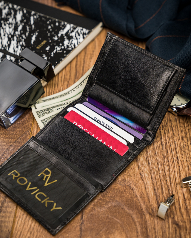 - Portfel posiada 7 przegródek na karty