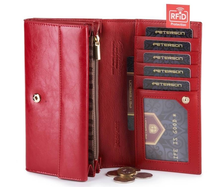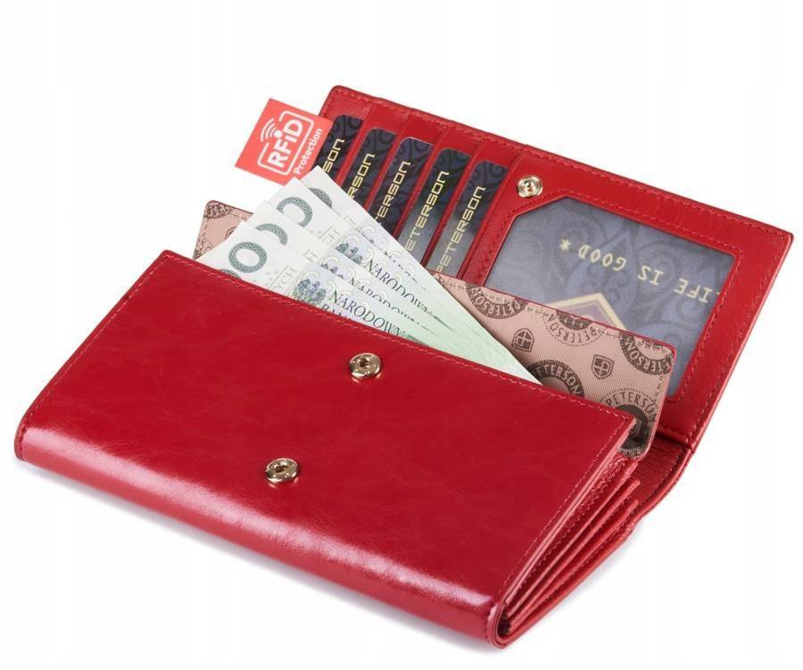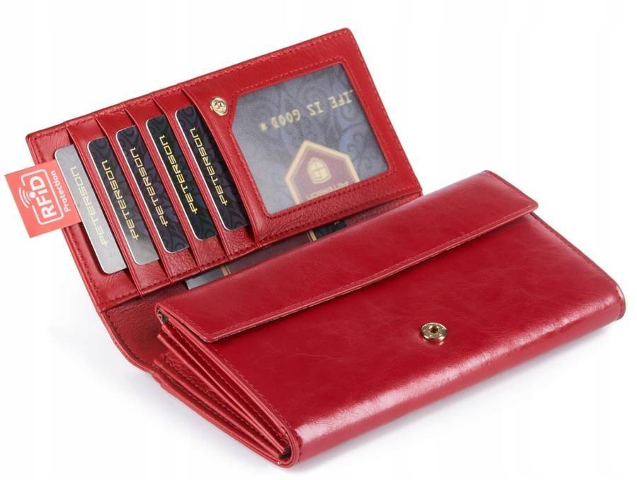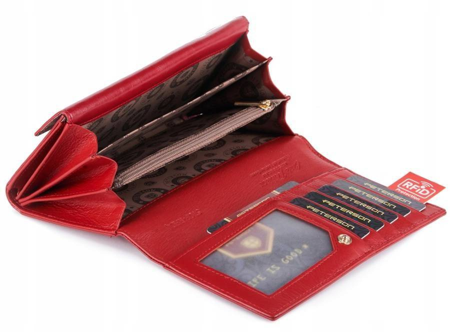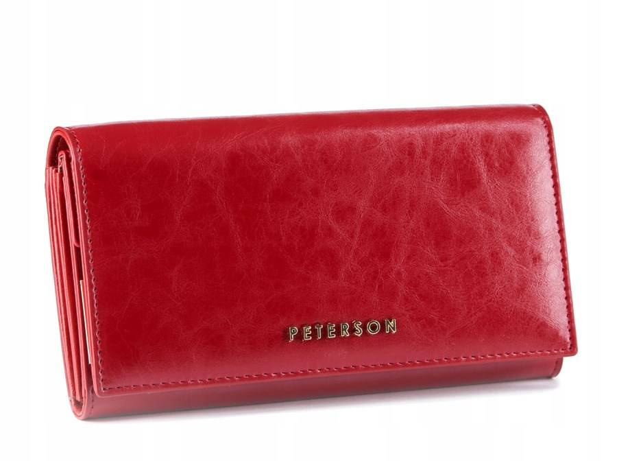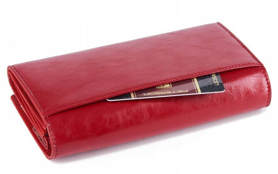 Czerwony skórzany portfel damski z klapką — Peterson