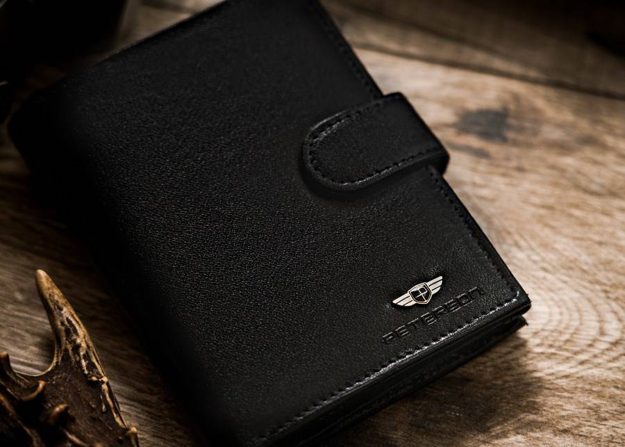 - Klasyczna czerń zawsze w modzie | Portfel o klasycznej stylistyce. Model w orientacji pionowej z zapięciem zewnętrznym;