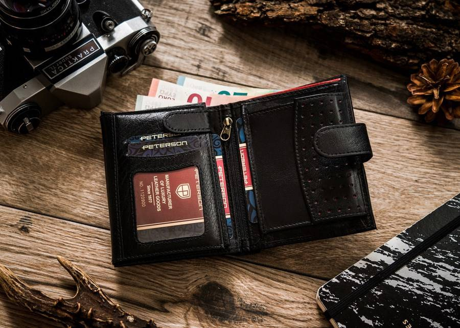 - banknoty schowasz do 2 otwartych, szerokich przegródek, wykończonych materiałową podszewką.