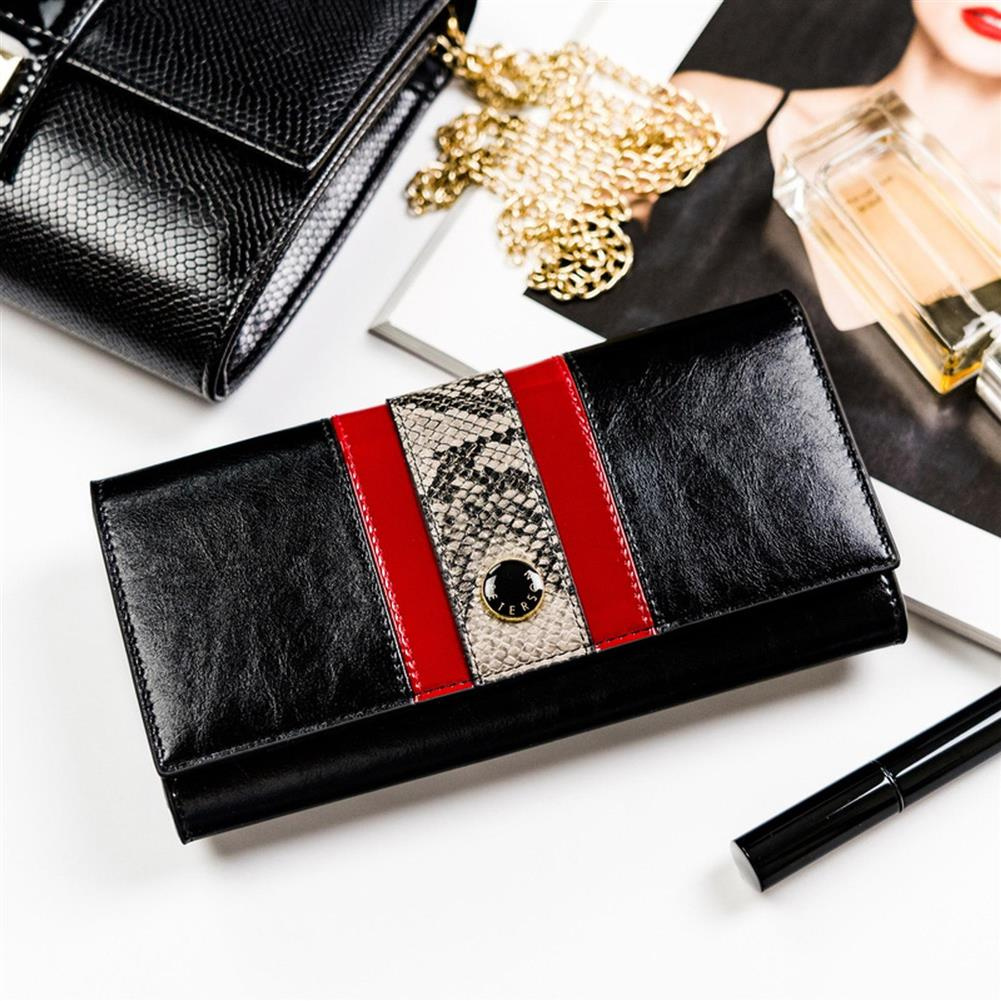 - Modny wzór | Portfel o klasycznym fasonie i piękny wzornictwie. Wstawki skóry ze wzorem imitującym skórę węża nadają mu drapieżnego charakteru! Świetnie wkomponuje się w każdą stylizację