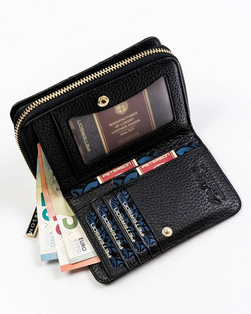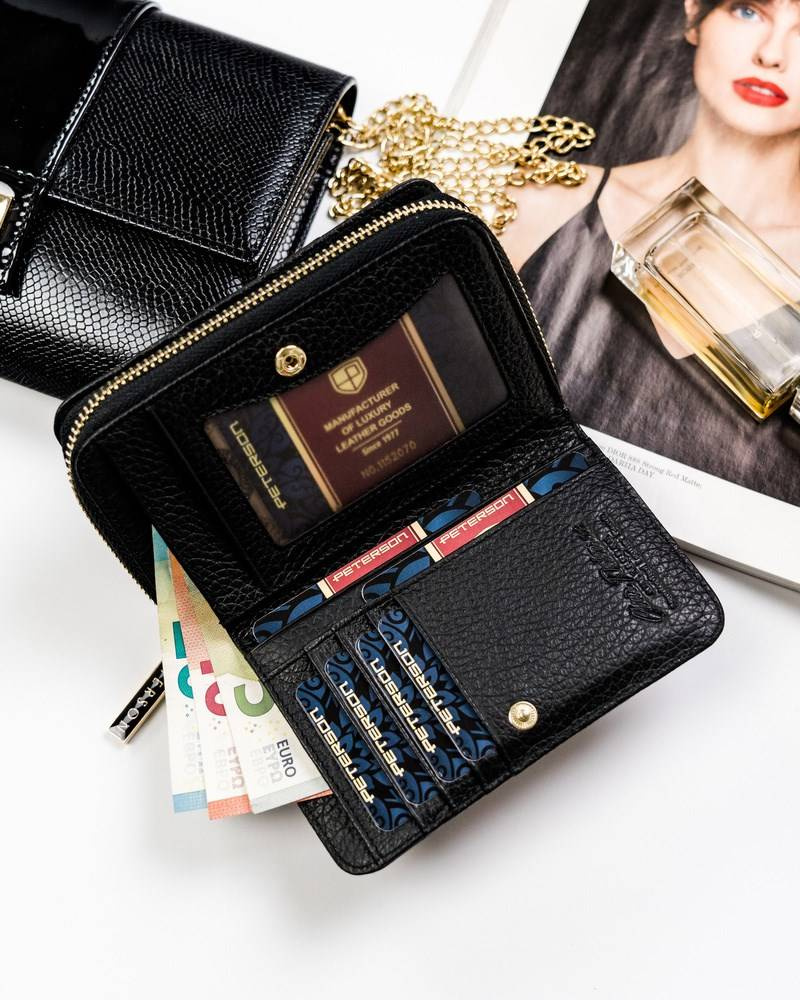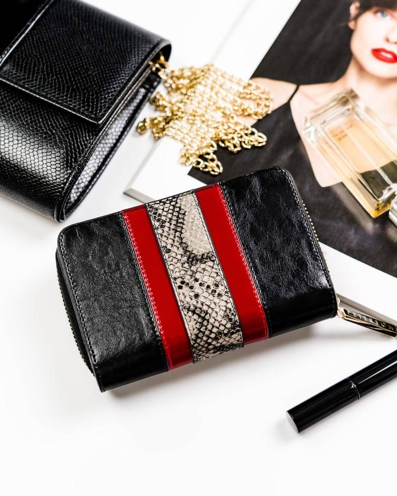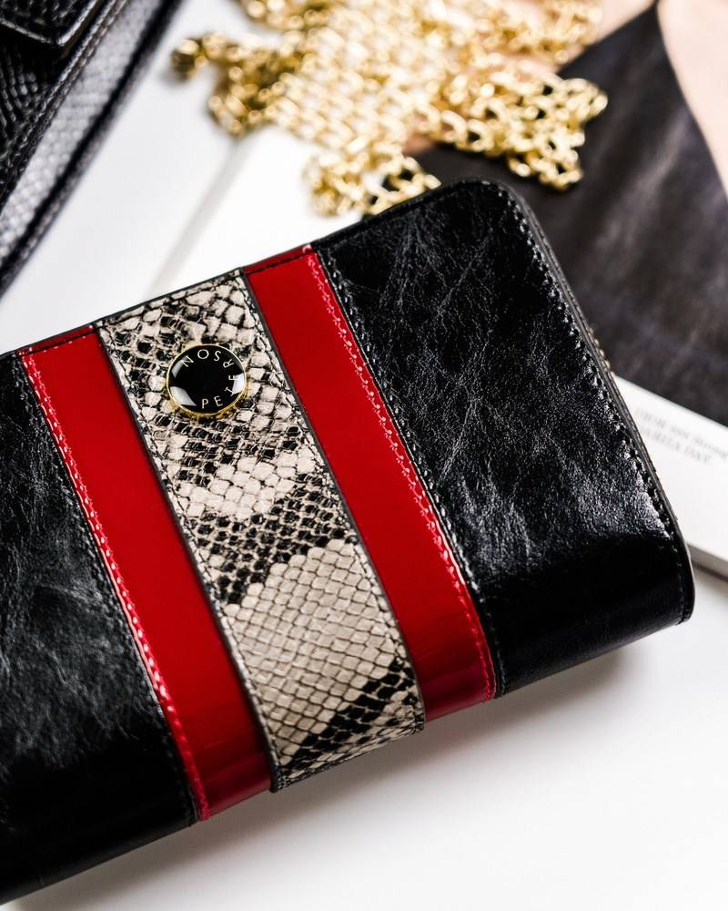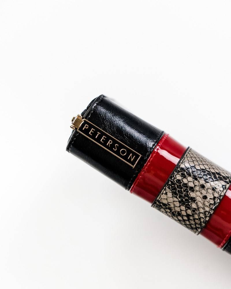 Pionowy, skórzany portfel z wężowym wzorem — Peterson