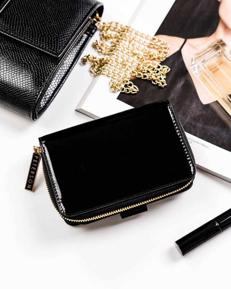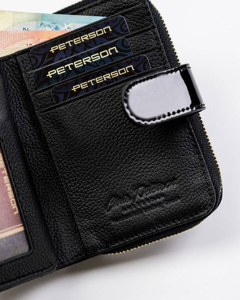 Bardzo przestronny portfel damski zapinany na zamek i zatrzask, bardzo starannie wykonany z doskonałej jakości skóry naturalnej licowej. Portfel wyposażony w blokadę antykradzieżową kart płatniczych STOP-RFID.