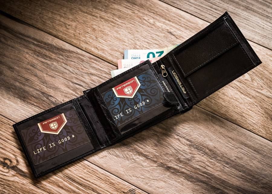 Duży skórzany portfel ze schowkiem na suwak — Peterson