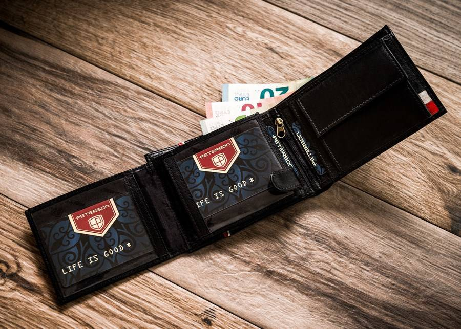 Skórzany portfel męski z ochroną kart RFID — Peterson