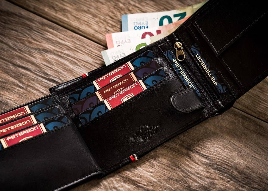 - banknoty schowasz do 2 otwartych, szerokich przegródek, wykończonych materiałową podszewką.