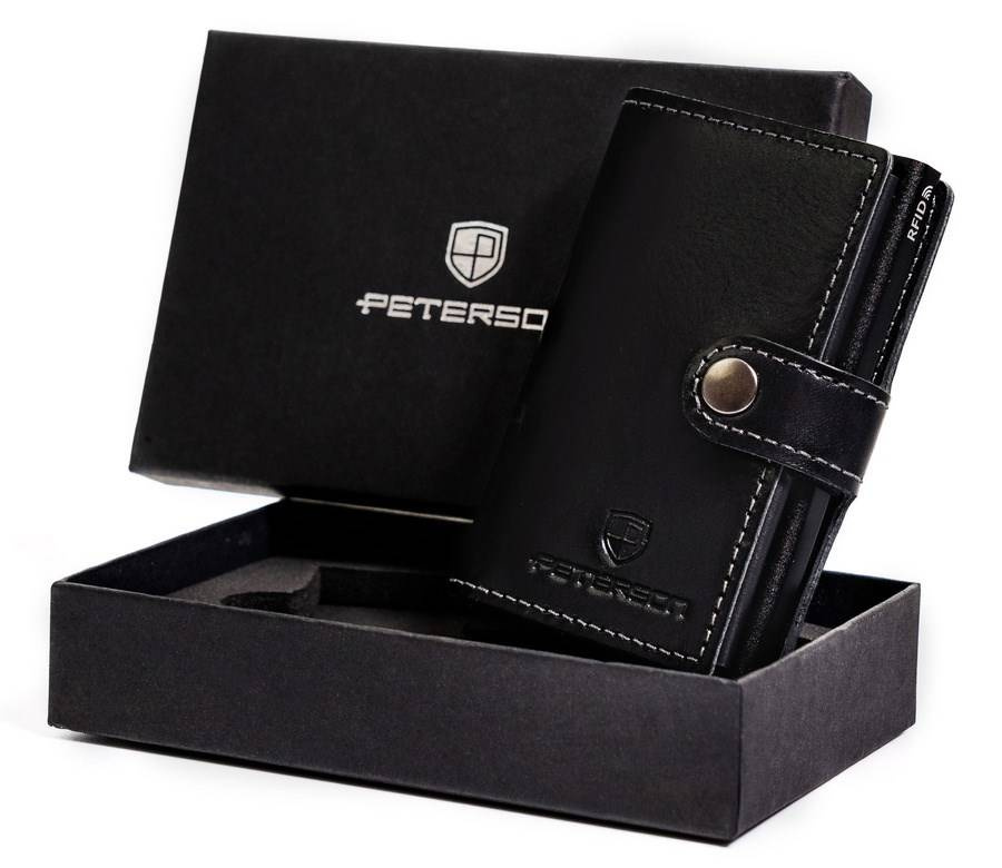 Portfel polskiej marki PETERSON® wykonany z eleganckiej, czarnej skóry naturalnej wysokiej jakości.