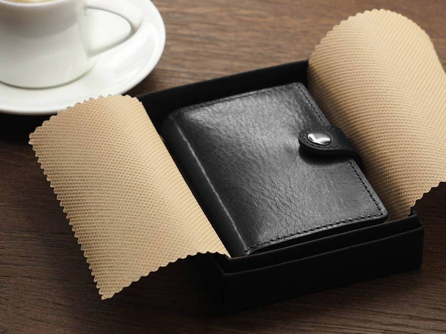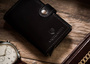 Portfel wyposażony w ochronne etui na karty z inteligentnym systemem do ich łatwego wysuwania - wystarczy pociągnąć za małą dźwigienkę, a karty natychmiast się wysuną.
