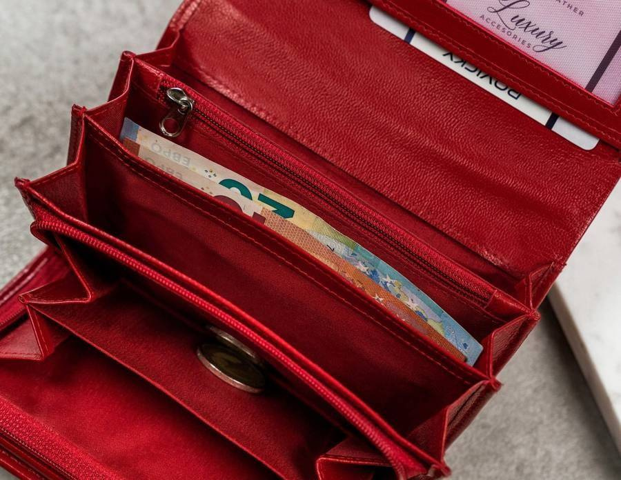 - 1 schowek w centralnej części portfela, zamykany na suwak