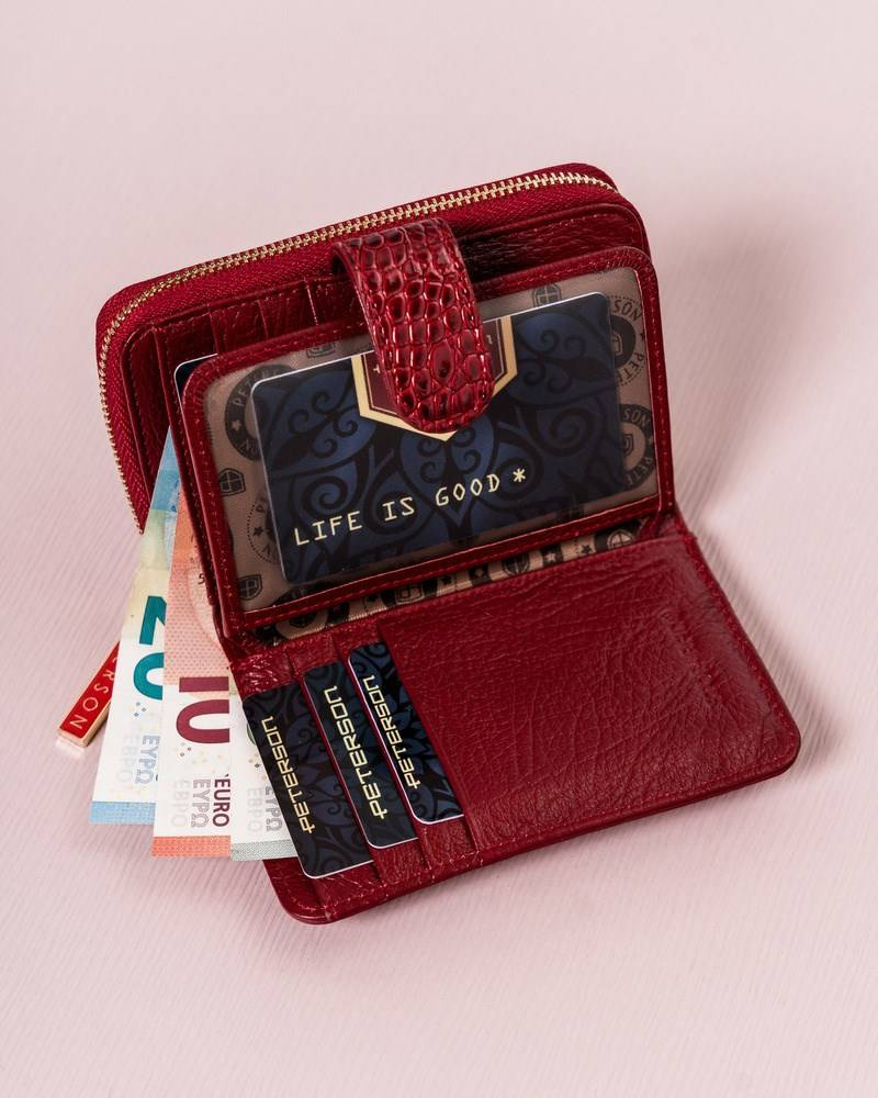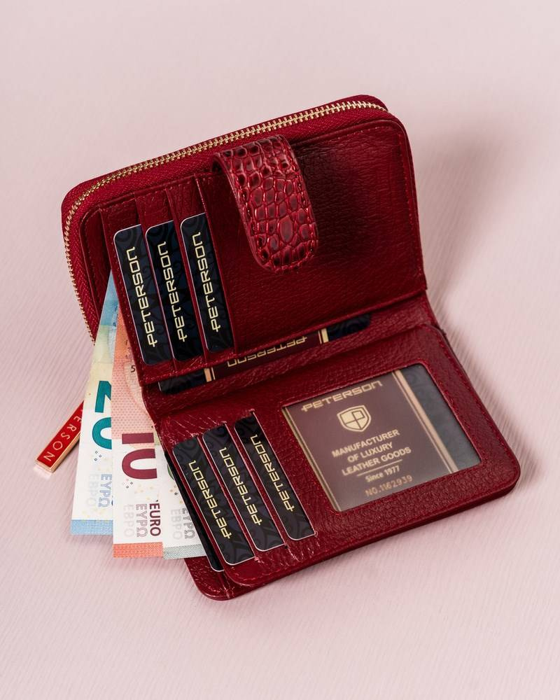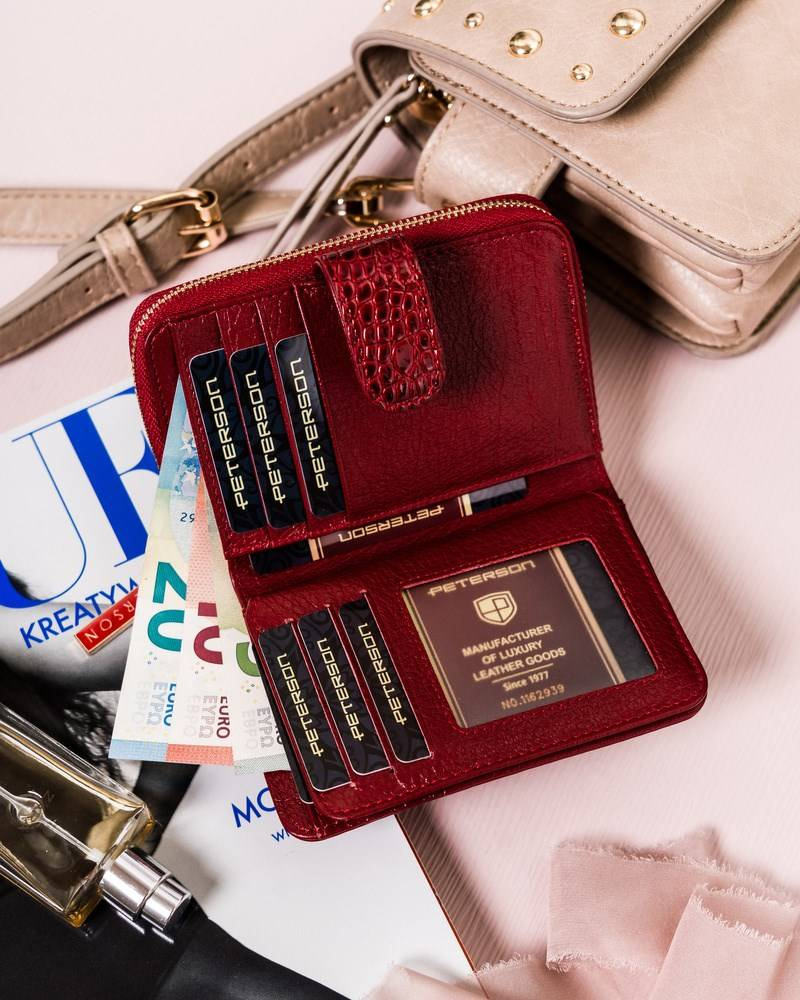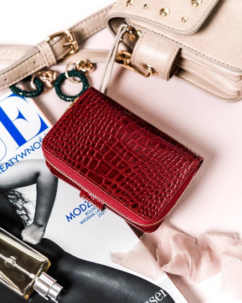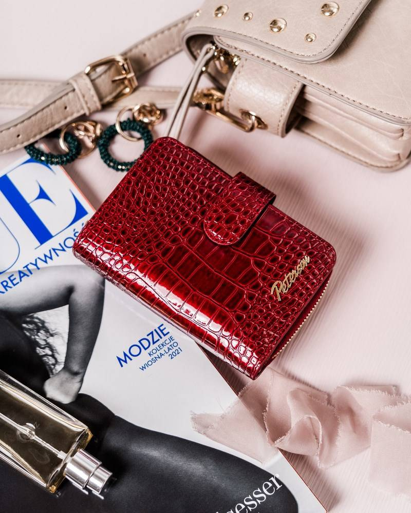 • Klasyczna czerń zawsze w modzie | Portfel o klasycznej stylistyce w zmysłowym, czerwonym kolorze. Model w orientacji pionowej, zapinany trwałym zatrzaskiem