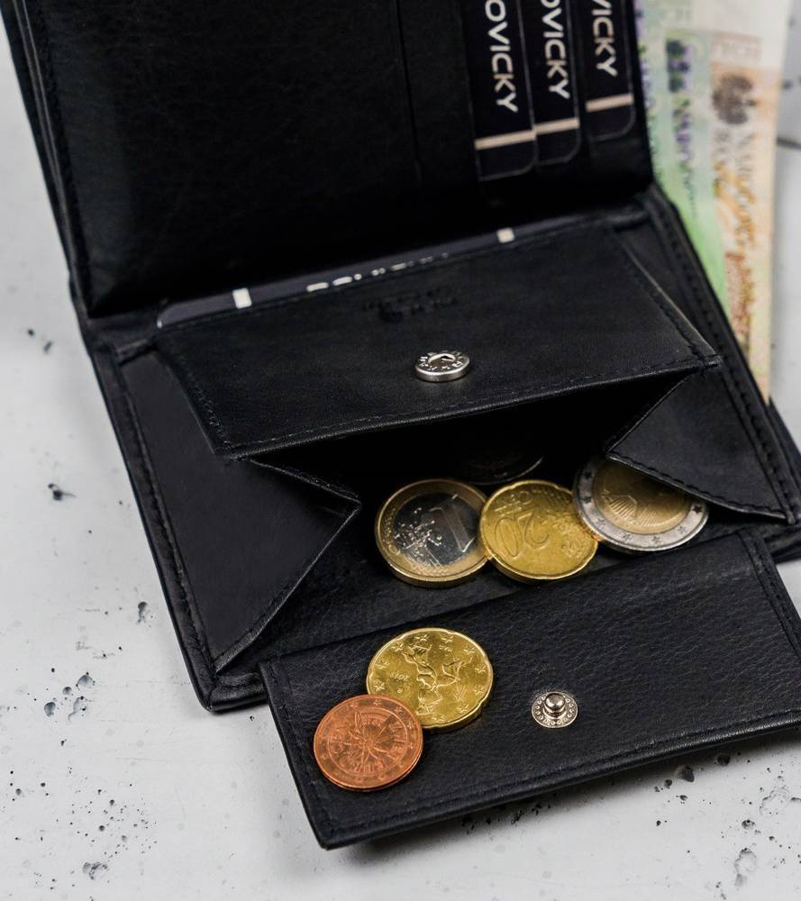 Dwie kieszenie na banknoty to idealne rozwiązanie dla osób używających dwóch walut.