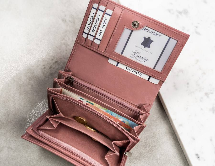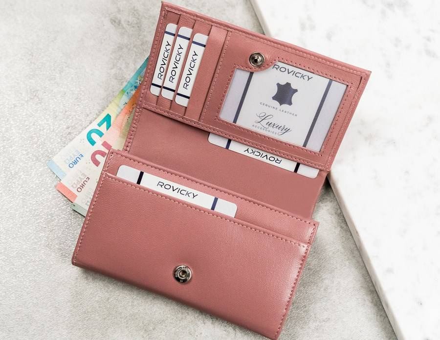 - 6 kieszonek na dokumenty w większym formacie, jak dowód rejestracyjny w okładce. Dwie z tych kieszonek mieszczą się po zewnętrznej części, z tyłu portfela, jedna z nich jest otwarta, druga zamknięta na zameczek. Zalecamy jednak, by ważne dokumenty przechowywać wewnątrz, zamykanego napą portfela.