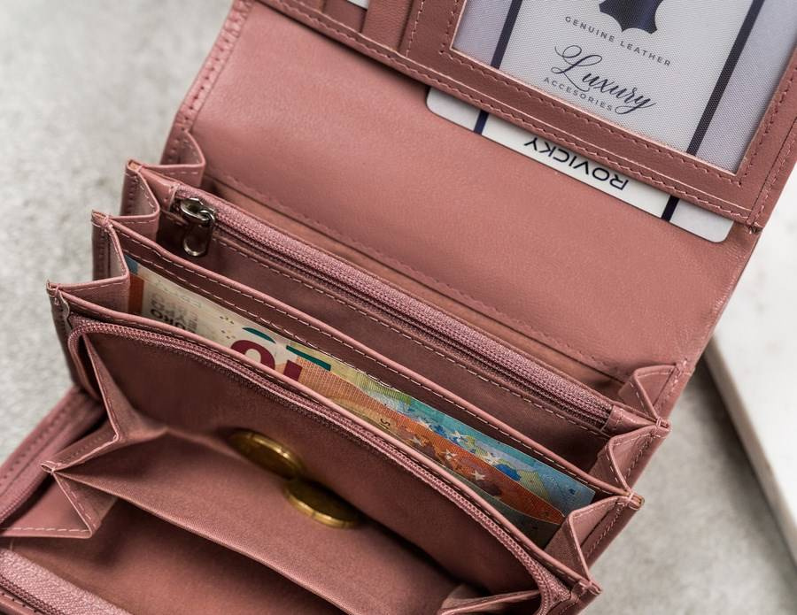 - 1 schowek w centralnej części portfela, zamykany na suwak