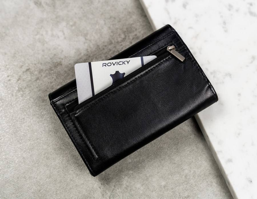 Kieszeń z tyłu portfela stanowi dużą wygodę. Każda z nas ma w swym posiadaniu drobnostki, które nie są na tyle istotne, by przechowywać je wewnątrz bezpiecznie zamykanego portfela. Zewnętrzna kieszenie świetnie posłuży np. jako miejsce na jednorazowe bilety komunikacji miejskiej. Zdecyduj sama :)
