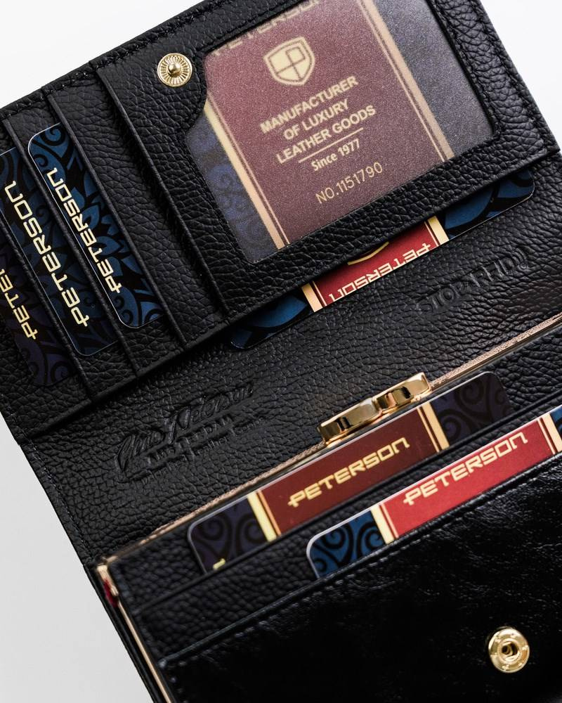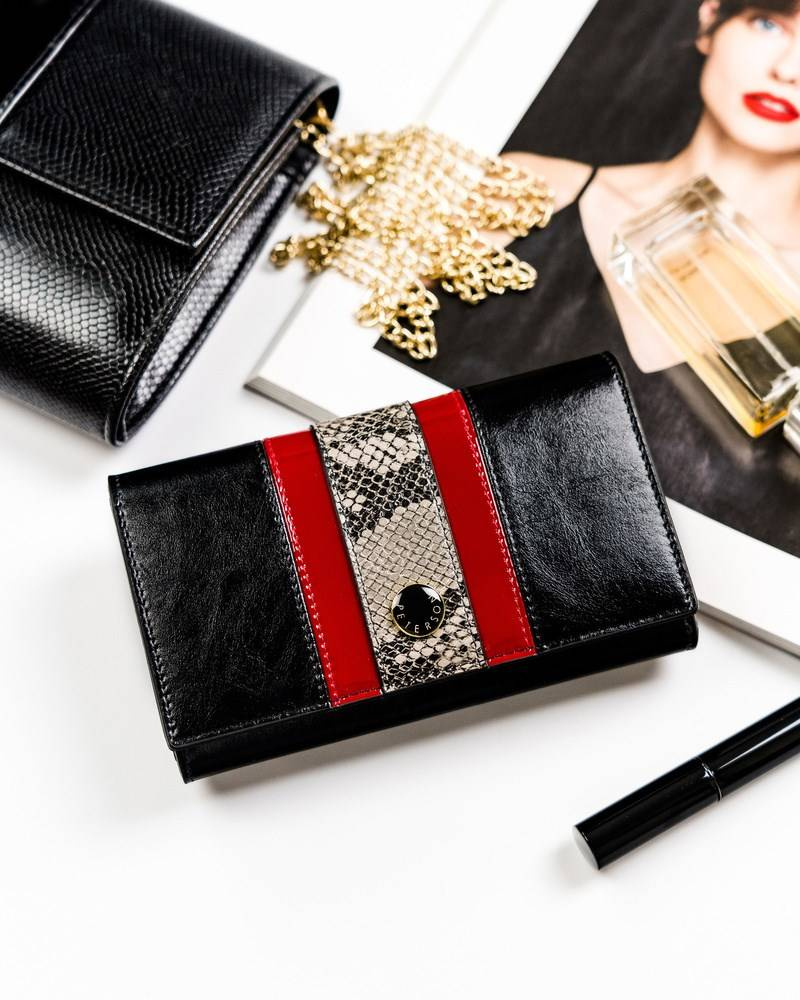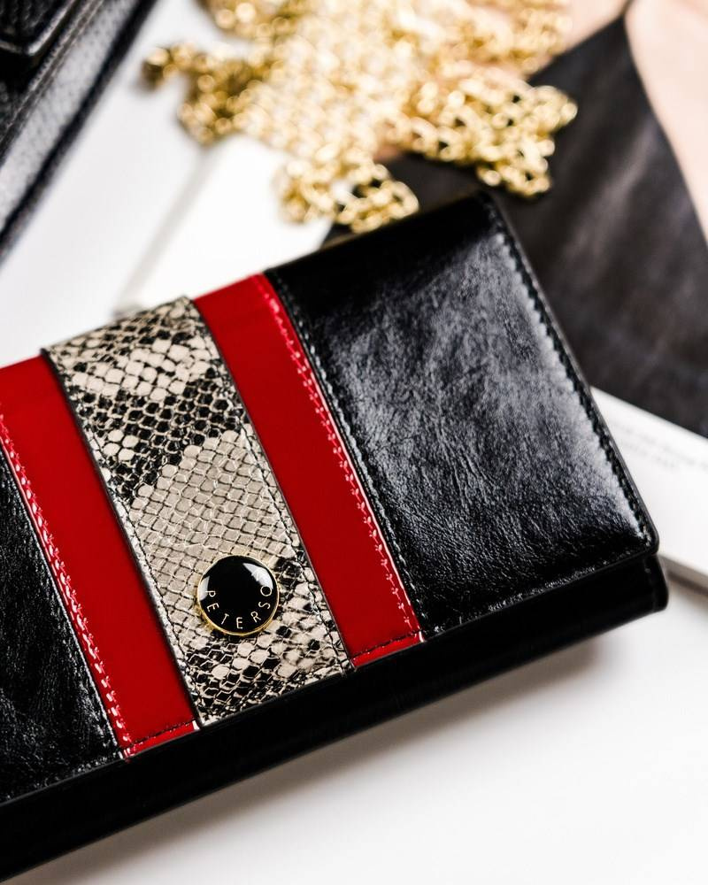 Skórzany portfel damski z motywem wężowej skóry — Peterson