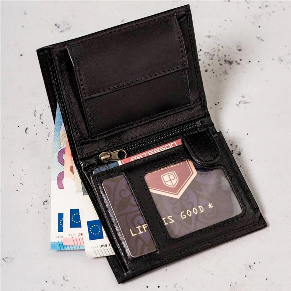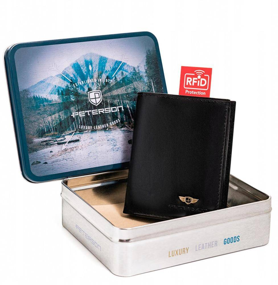 Mały, skórzany portfel męski z systemem RFID — Peterson