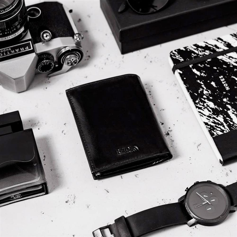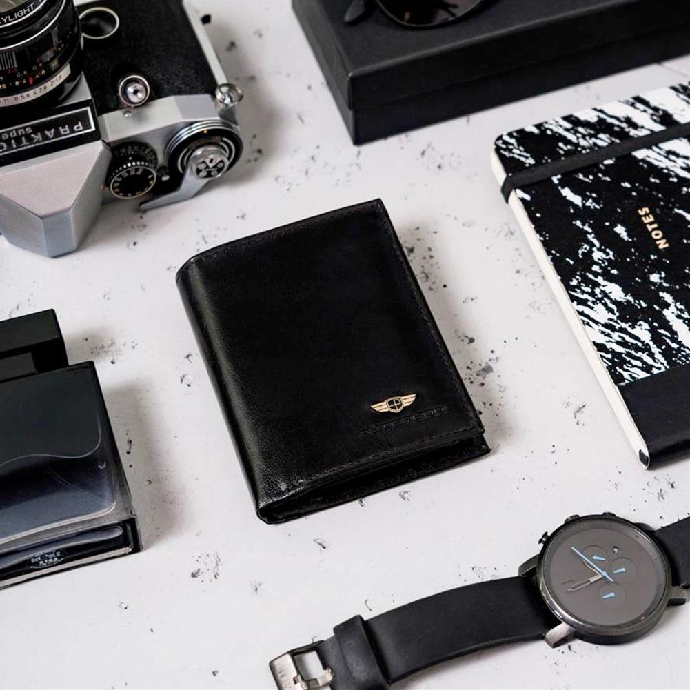 - Portfel o ponadczasowym designie | Skórzana klasyka! Portfel męski w orientacji pionowej w czarnym, zawsze modnym kolorze
