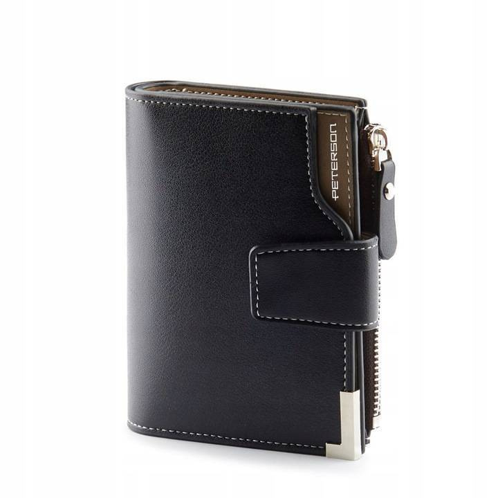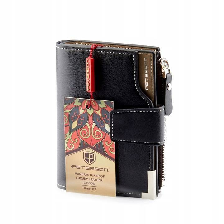 • Czarny kolor zawsze w modzie | Portfel o klasycznej stylistyce. Model w orientacji pionowej zapinany na zatrzask
