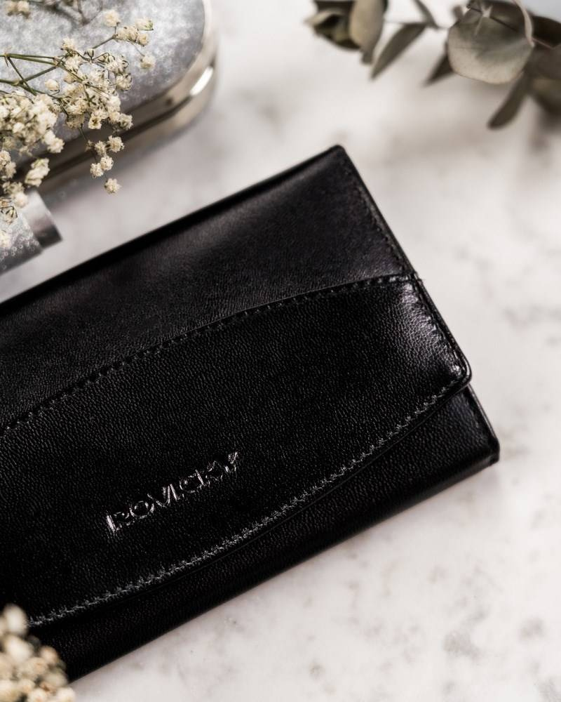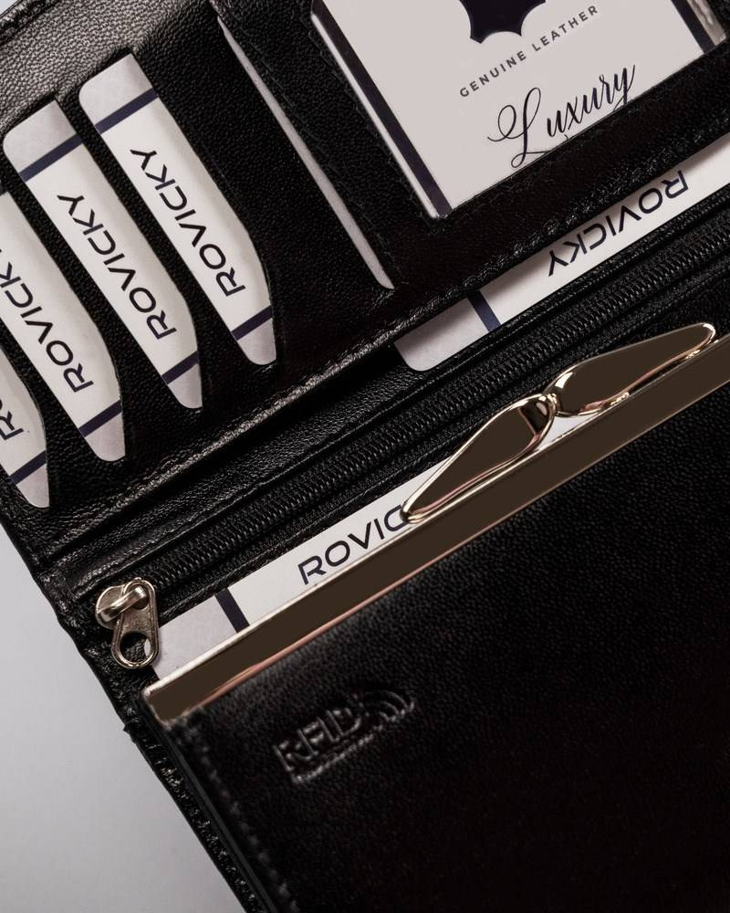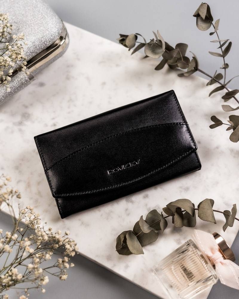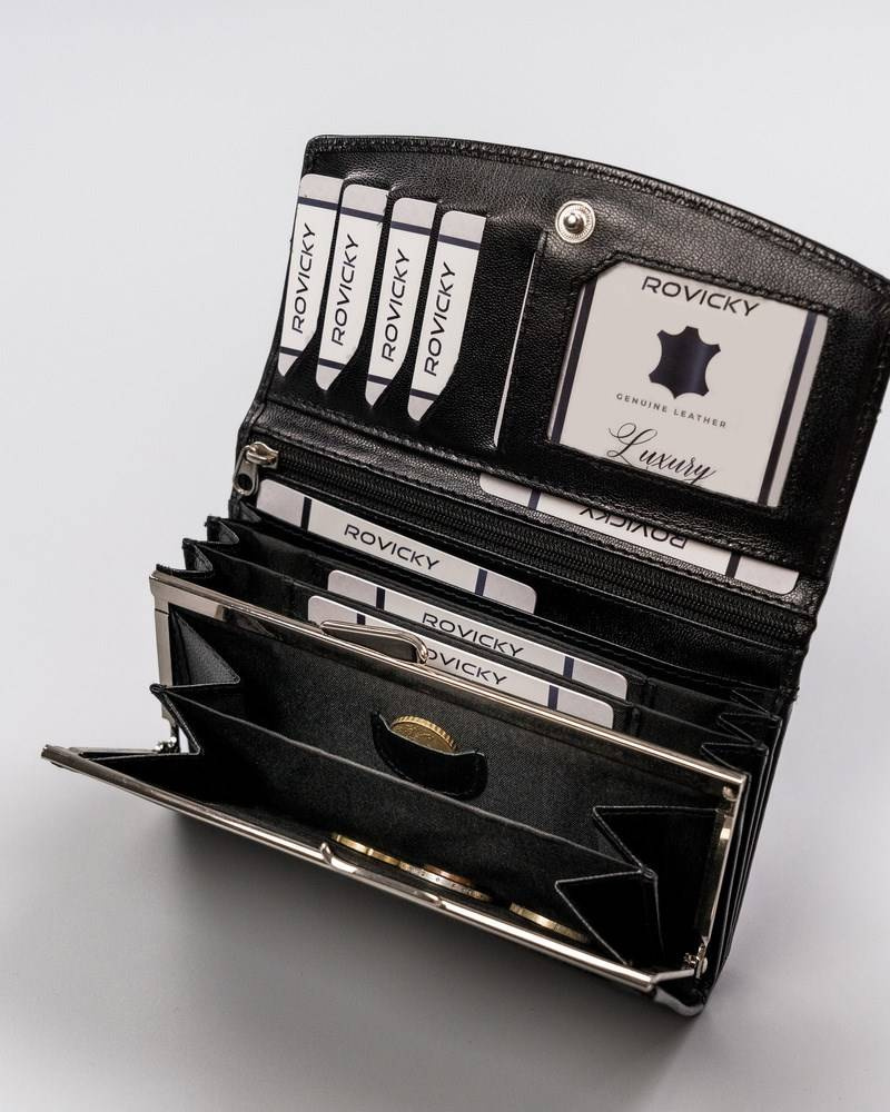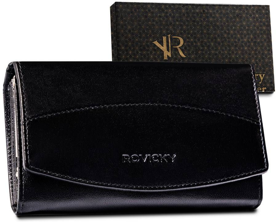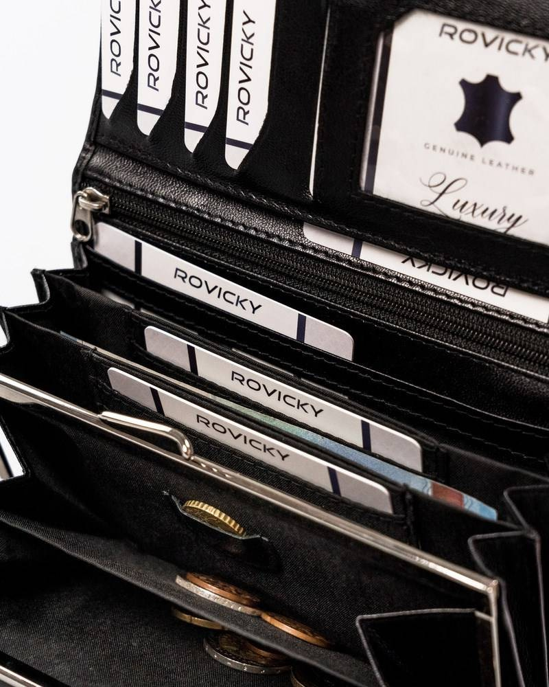Skórzany portfel damski z tłoczoną klapą — Rovicky
