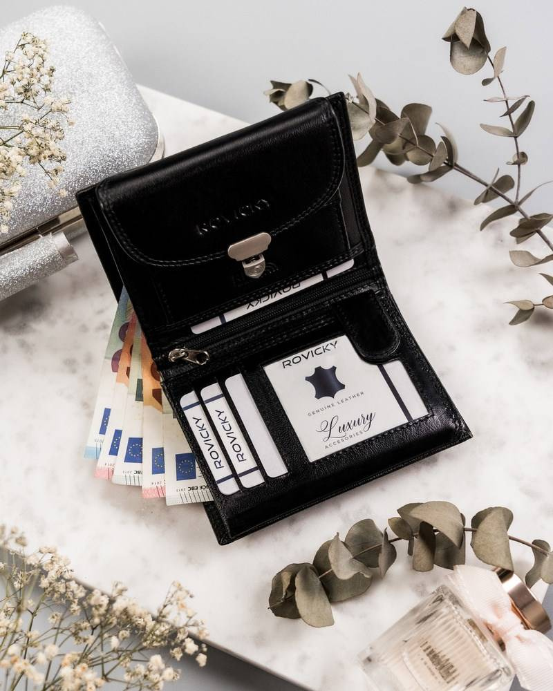 Mały, skórzany portfel damski na zatrzask — Rovicky