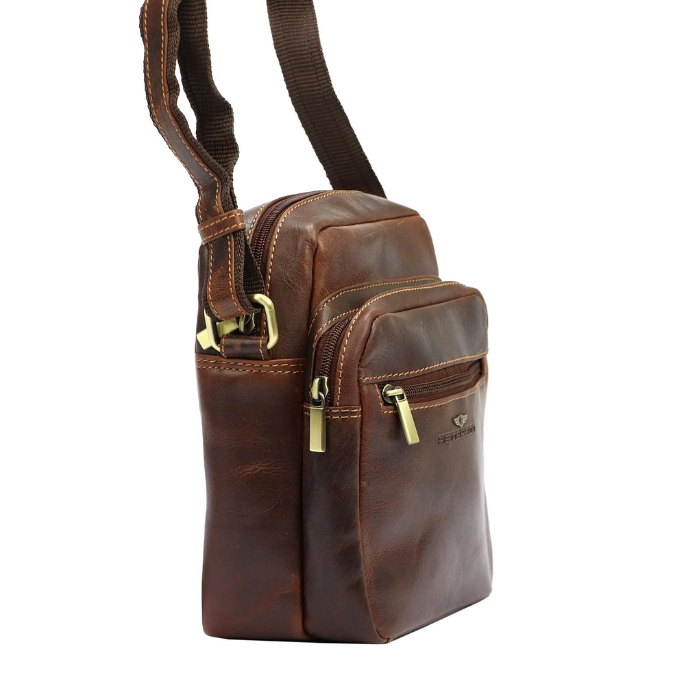 Pojemna, skórzana torba męska z kieszeniami — Peterson
