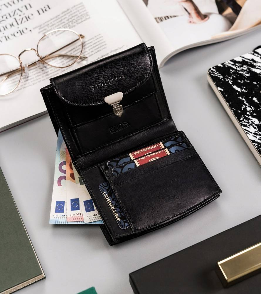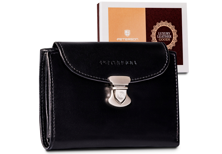 Skórzany portfel damski z systemem RFID zapinany na zatrzask — Peterson