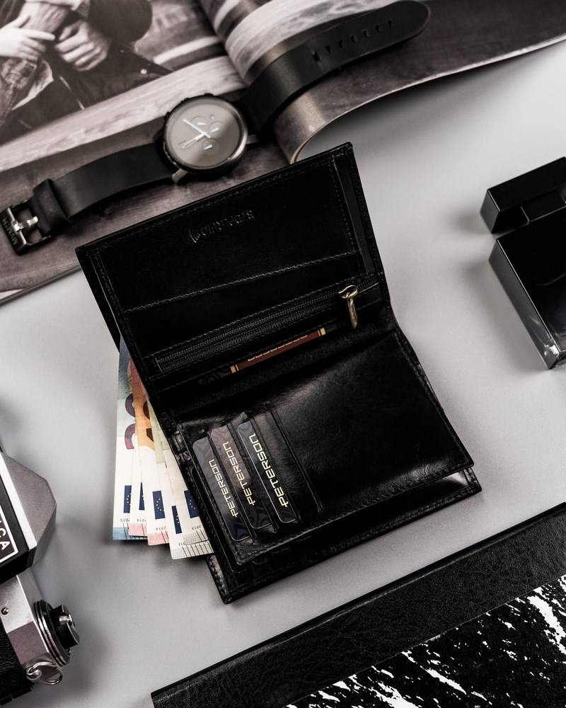- Funkcjonalność i styl | Portfel zarówno dla zwolenników gotówki i "wirtualnych pieniędzy". Gotówka i spora ilość dokumentów znajdzie tu swoje miejsce. Model mieści dowód rejestracyjny!