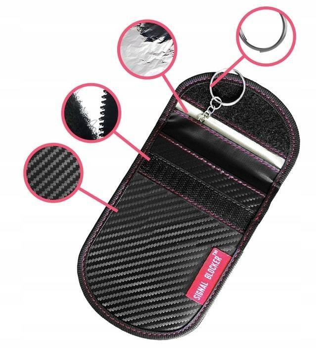 - kieszeń zewnętrzna nie blokuje sygnału, służy do przechowywania kluczyka podczas jazdy