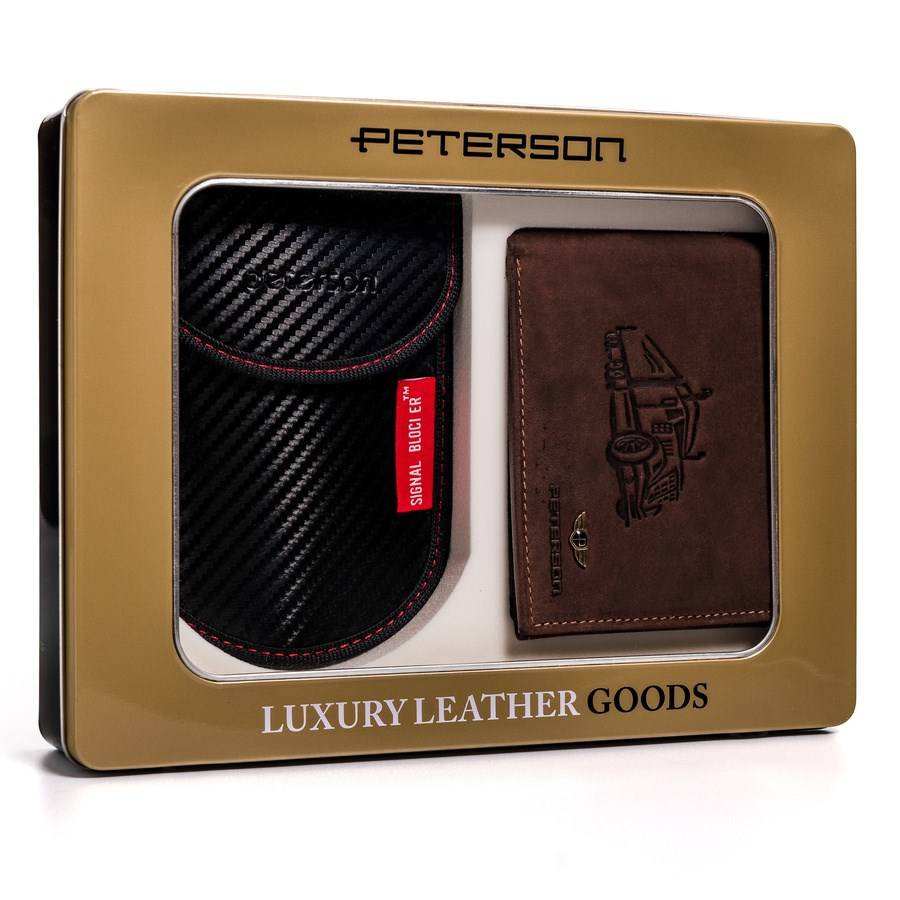 Zestaw prezentowy: skórzany portfel męski i etui na kluczyk i karty — Peterson