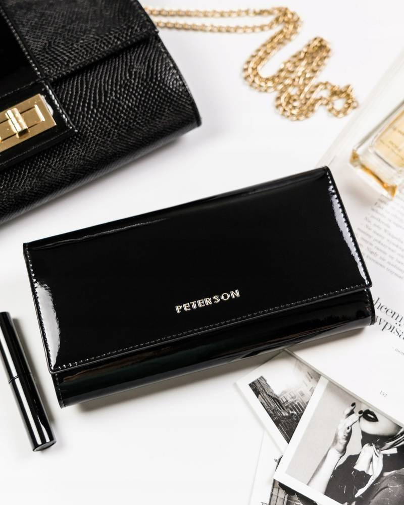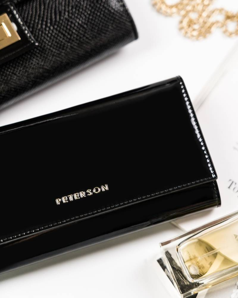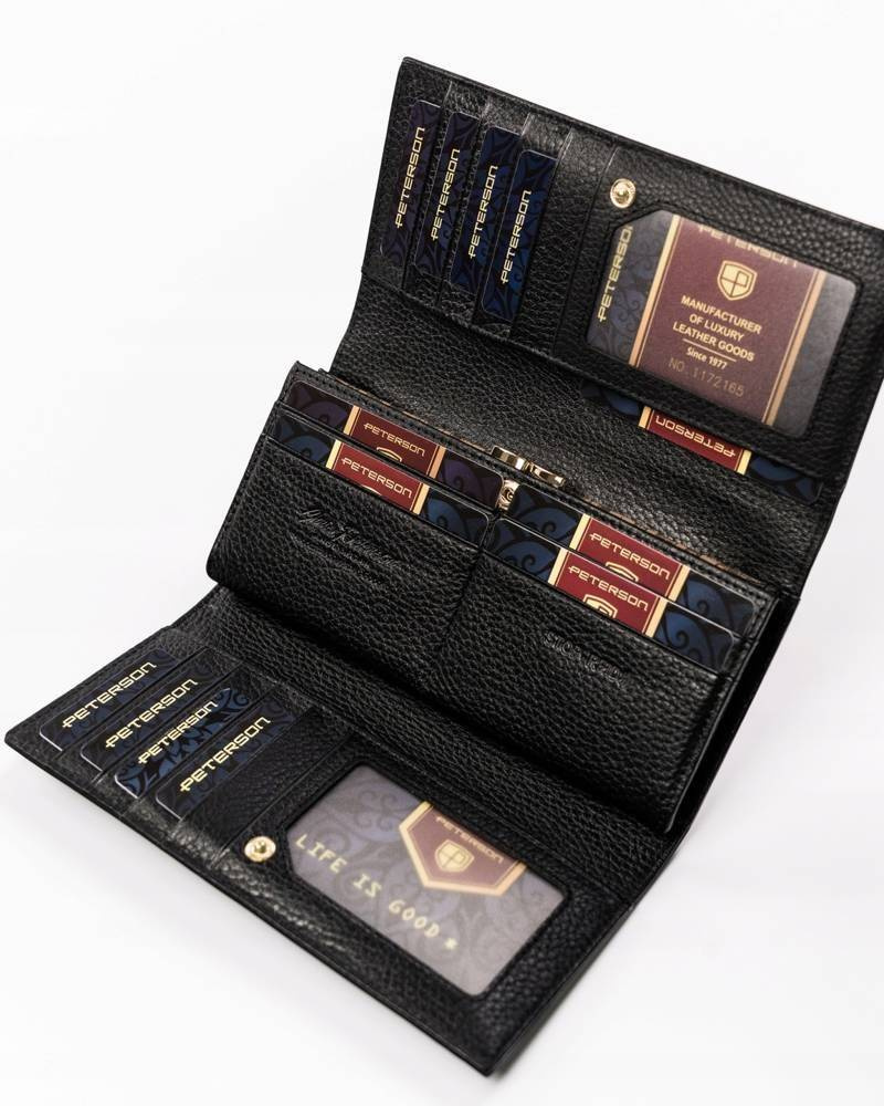 Duży, skórzany portfel damski zamykany na zatrzask — Peterson
