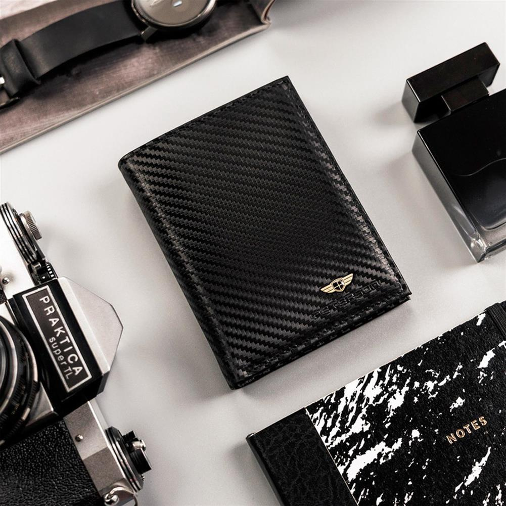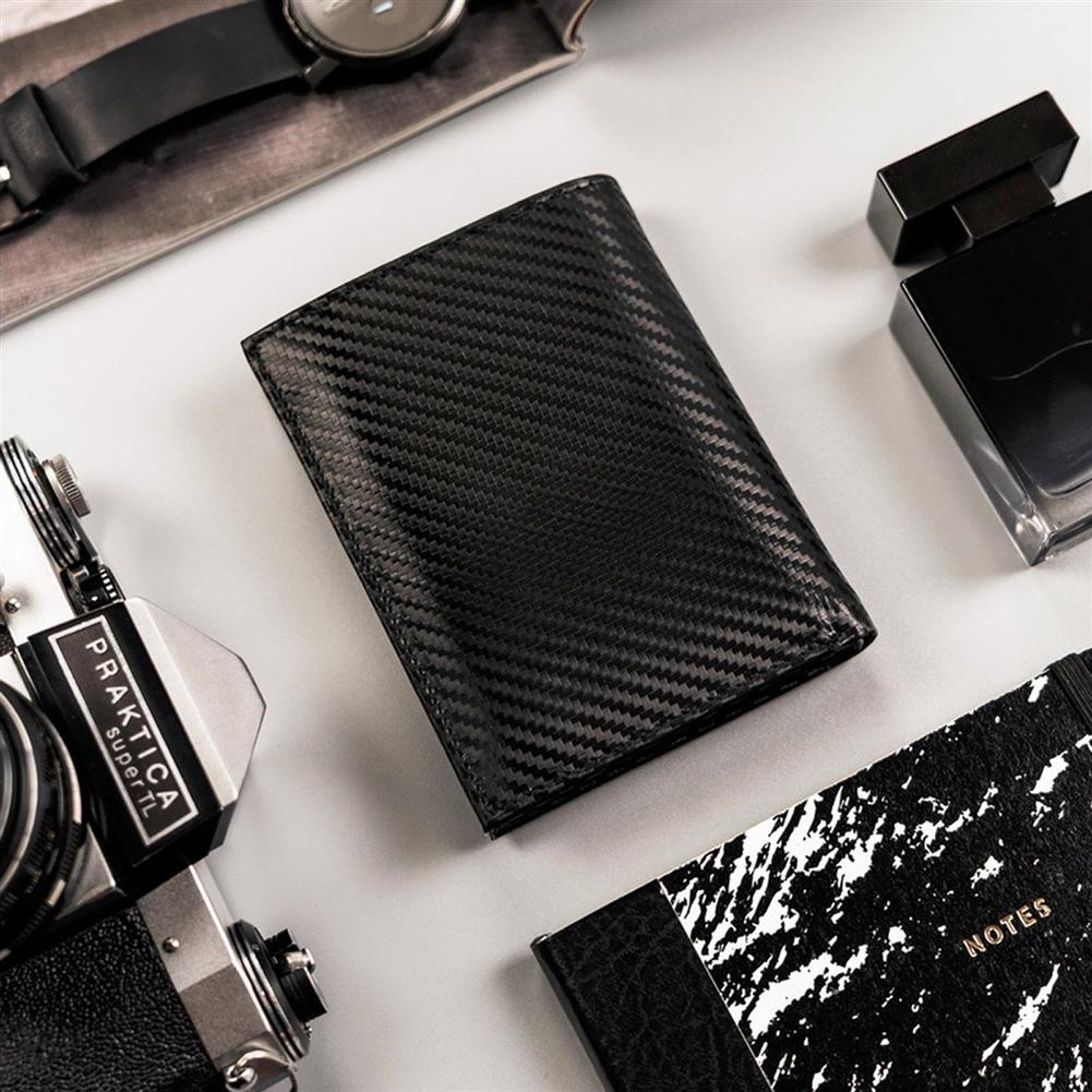 - Eleganckie wykonanie | Portfel wykonany został z wysokiej jakości skóry naturalnej powleczonej z zewnątrz warstwą do złudzenia przypominającą włókno węglowe (carbon);