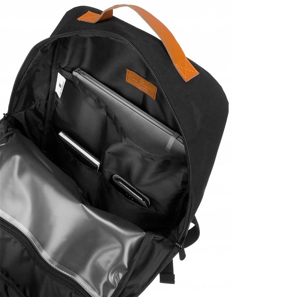 Oferowany model posiada 1 pojemną komorę zamykaną solidnym zamkiem błyskawicznym. Wewnątrz umieszczono 1 dużą, otwartą kieszeń, która swobodnie zmieści Twój laptop lub inne urządzenie przenośne. Oprócz tego, w plecaku znajdują się 4 małe, otwarte kieszonki oraz 1 transparentna, zapinana na suwak.