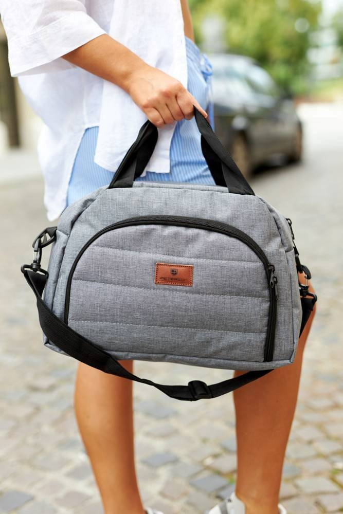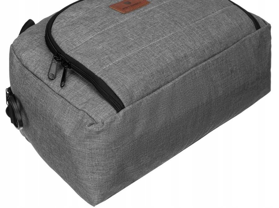Pojemna, wielofunkcyjna torba zamykana na zamek błyskawiczny. Jednokomorowa, z wnętrzem wyposażonym w 1 praktyczną przegródkę zapinaną na suwak. W kolejnej kieszeni umieszczonej na froncie, wyszyto 1 pojemną kieszonkę zapinaną na rzep.