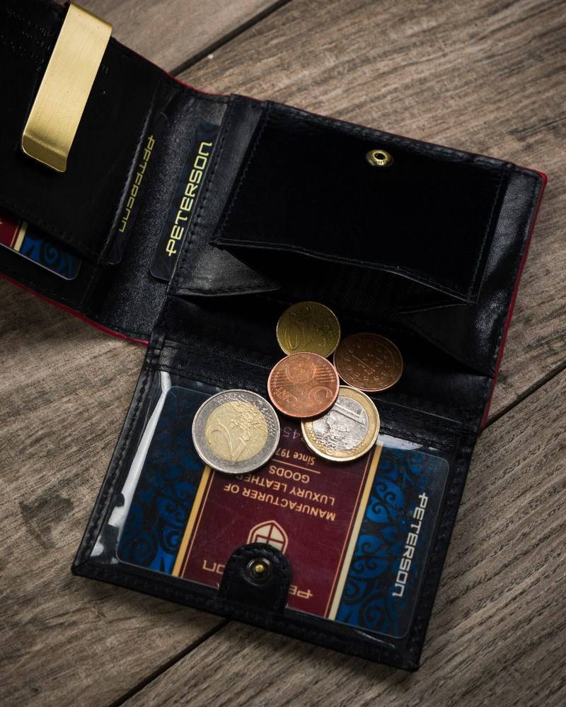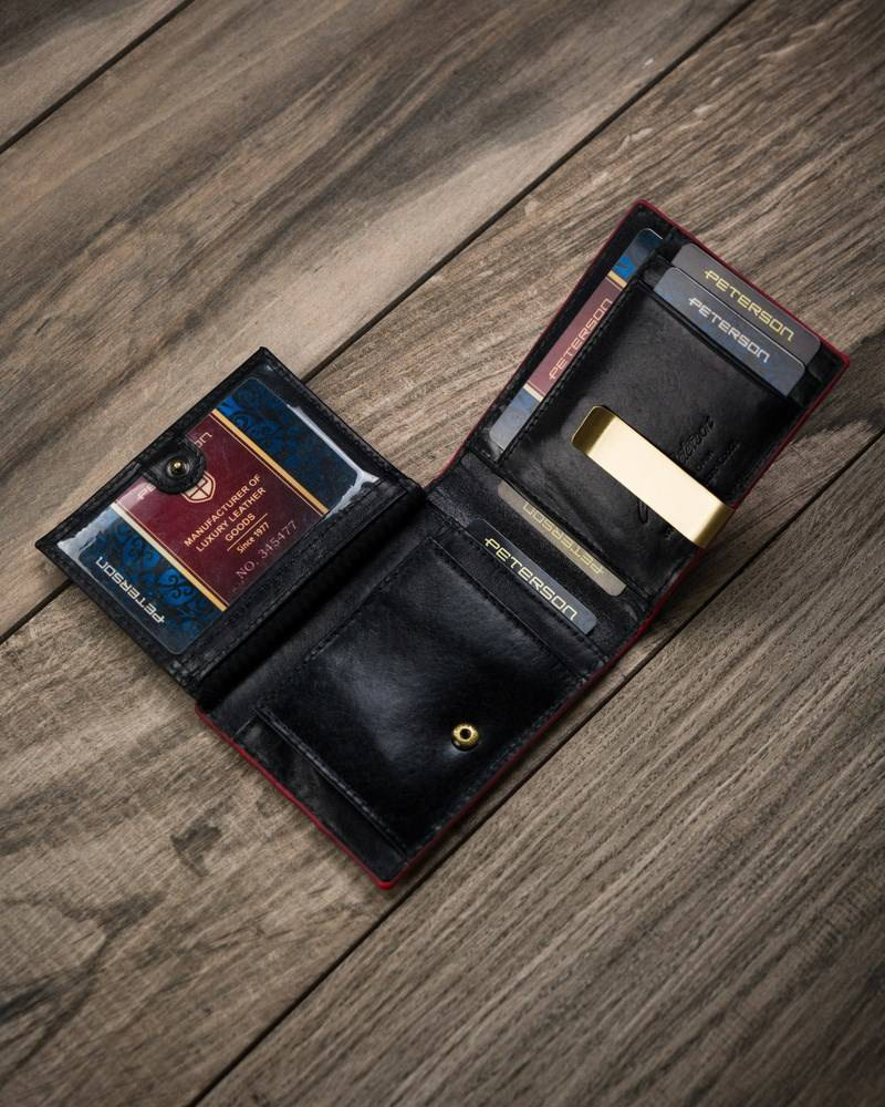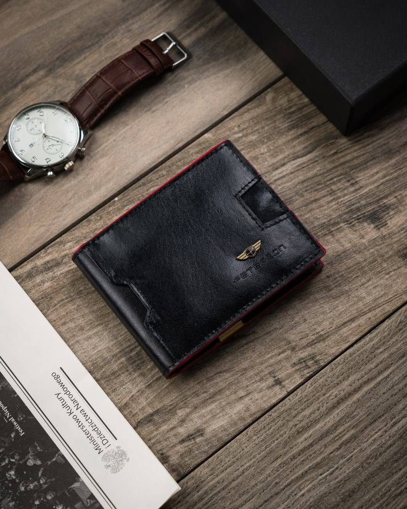 Elegancki portfel męski z czerwonym akcentem — Peterson