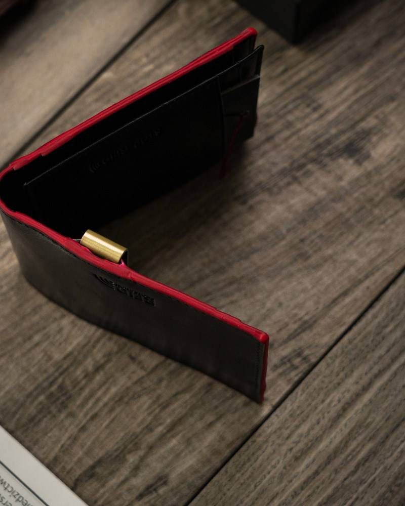 - Odszyty z trwałej skóry naturalnej, która świetnie pasuje do butów czy paska. Brzegi portfela zdobi elegancka czerwona obwódka.