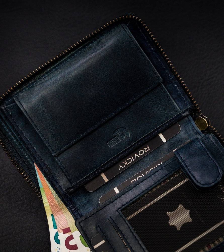 W kieszeniach na banknoty i monety zmieścisz satysfakcjonującą ilość gotówki.
