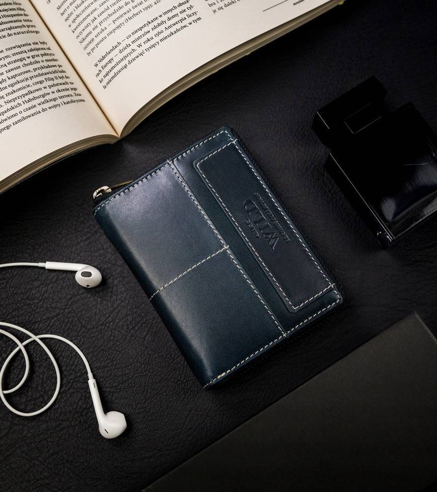 Oferujemy najwyższej jakości duży portfel męski ze skóry naturalnej, który: