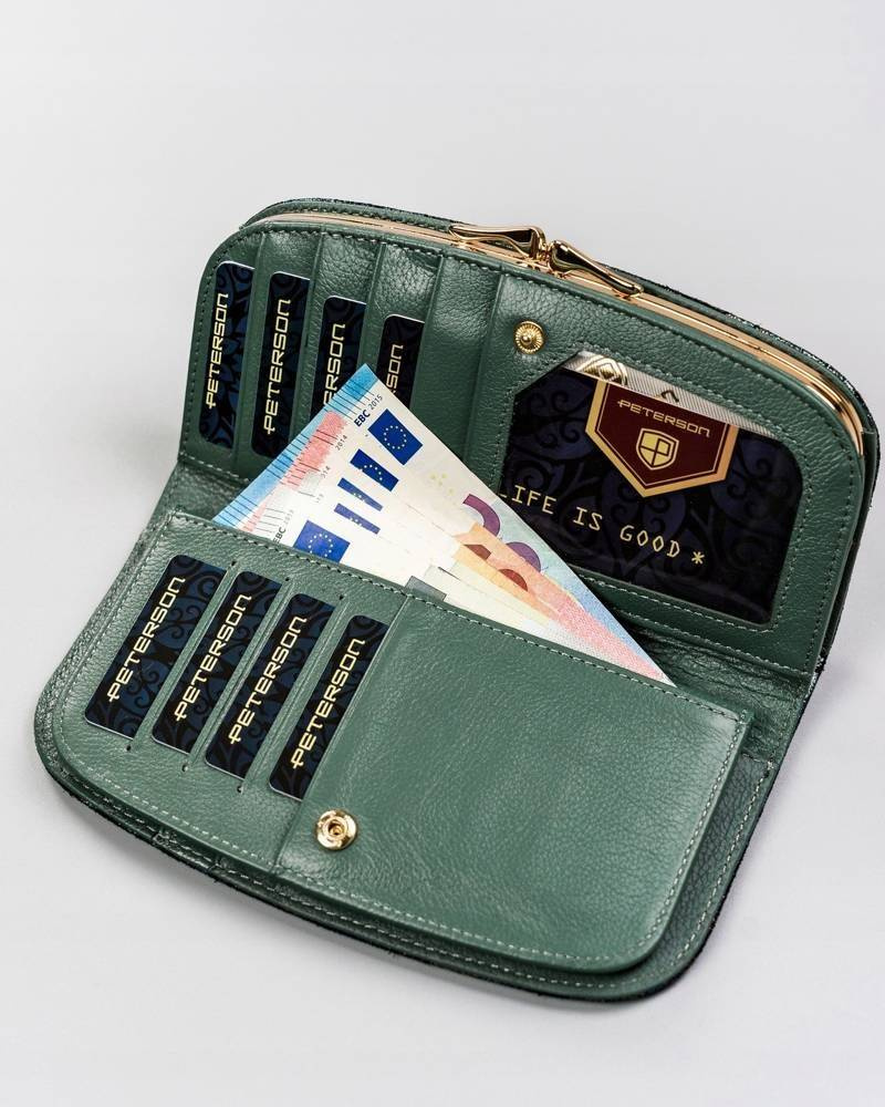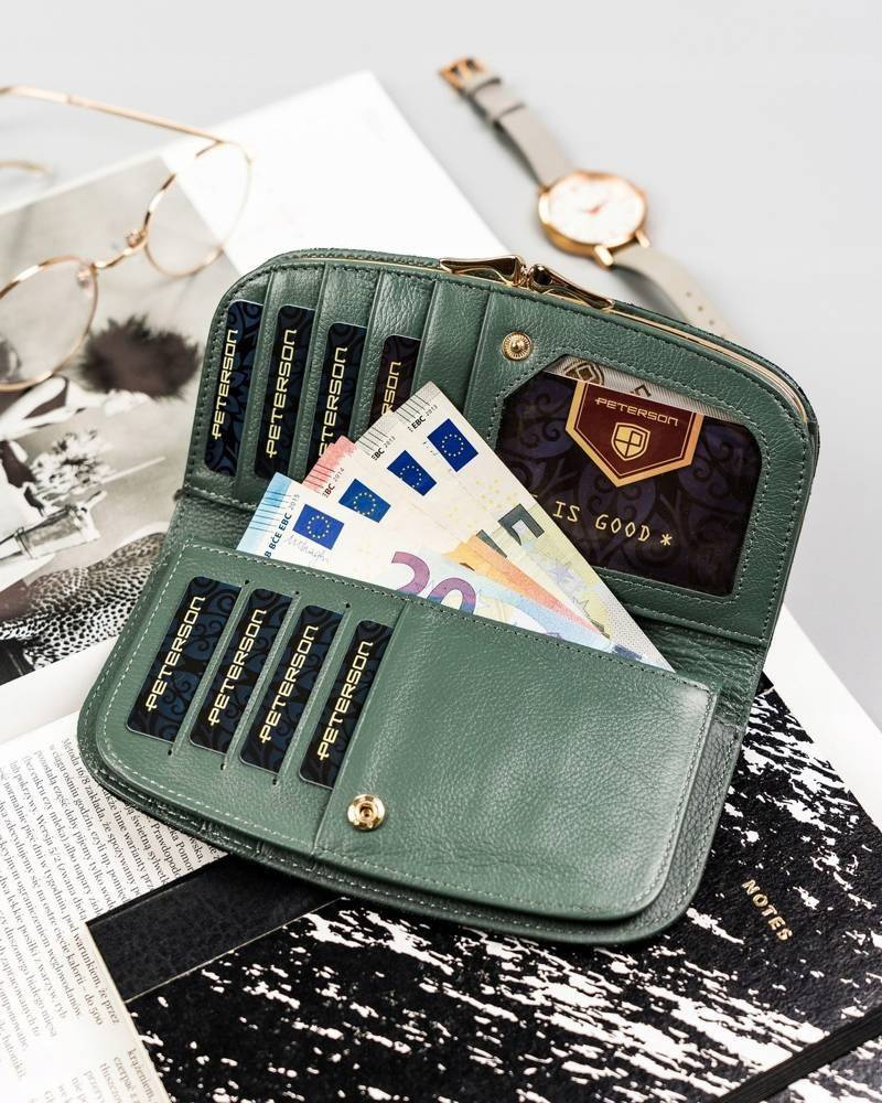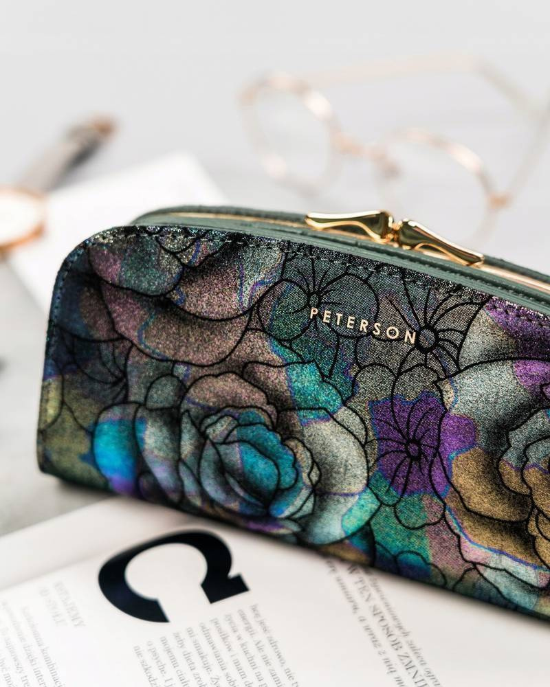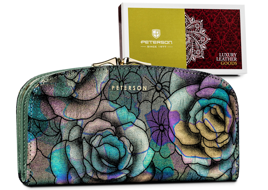 Duży, pojemny portfel ze skóry naturalnej z kwiatowym wzorem — Peterson
