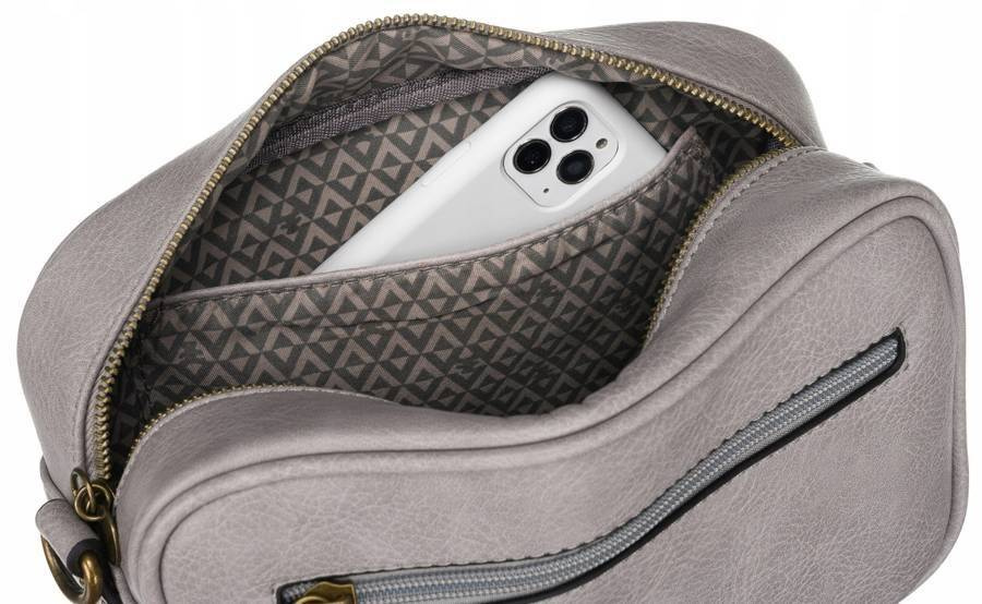 - Torebka jednokomorowa na suwak | Cały środek wyściełany materiałową podszewką, która chroni eko skórę przed uszkodzeniami. Wnętrze wyposażono w dodatkowe 2 kieszonki na drobiazgi