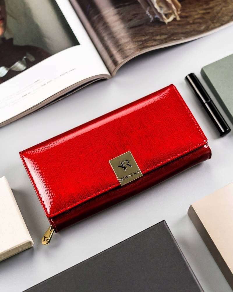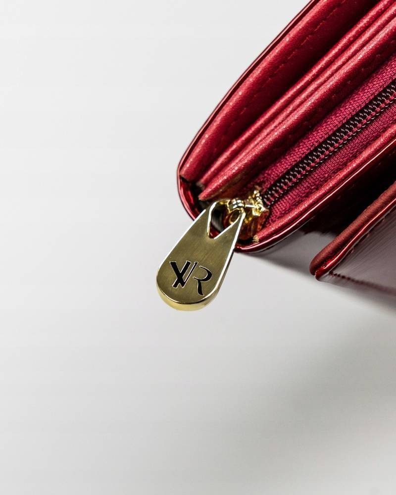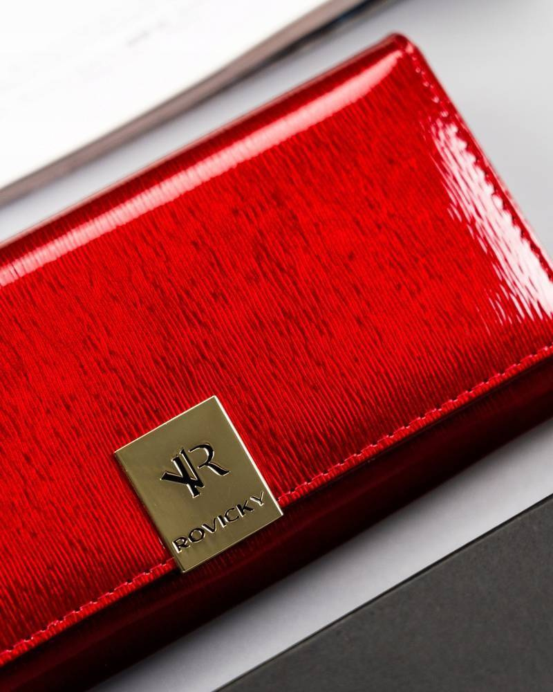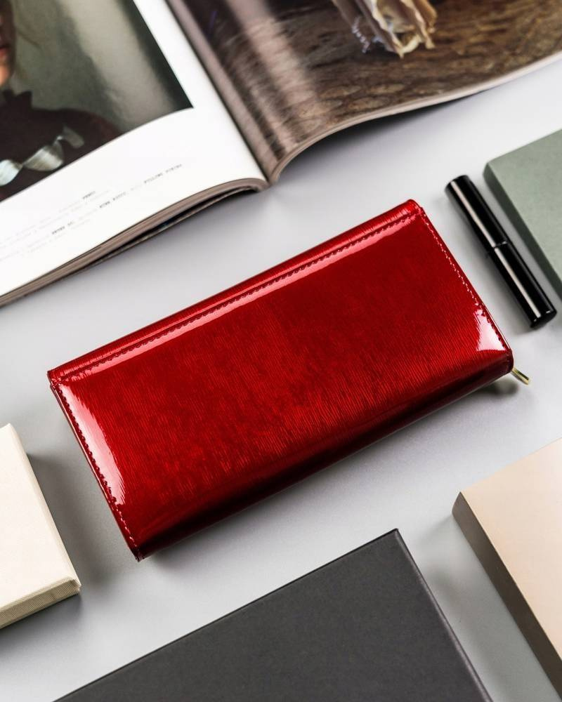 - Design, który zawsze będzie w modzie | Portfel w ponadczasowym stylu. Model w całości lakierowany. Pod warstwą lakieru, klapkę zdobi prążkowana faktura;