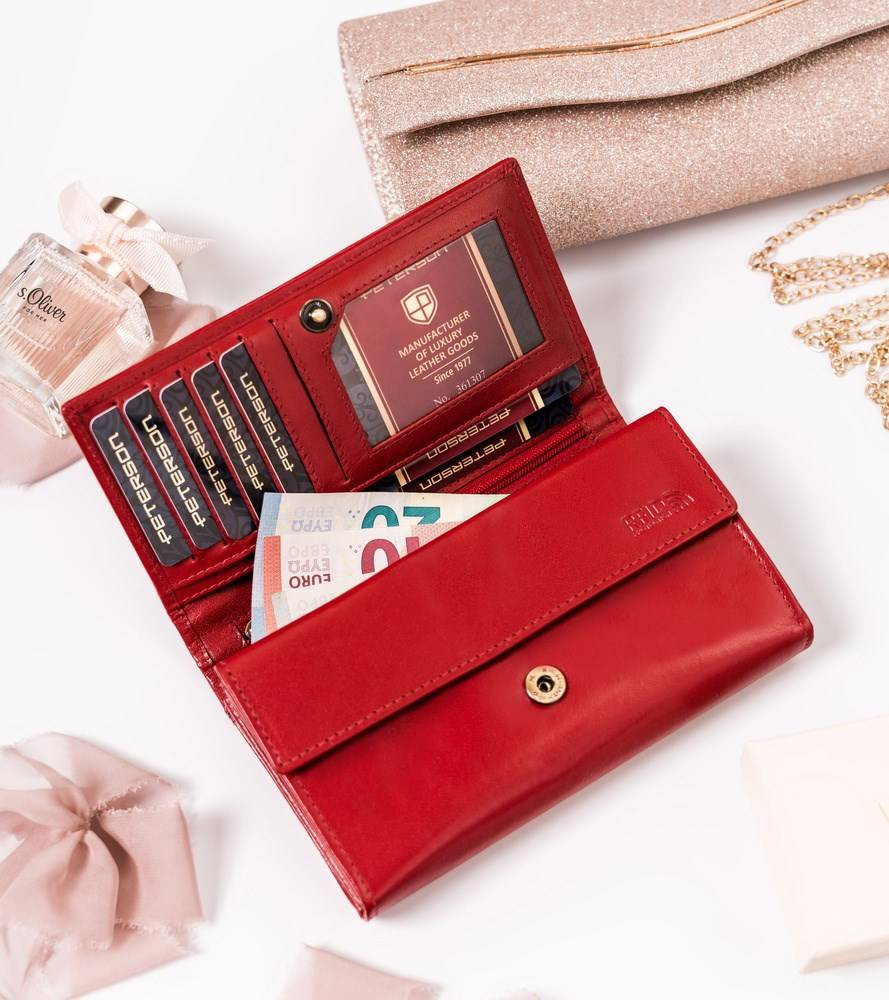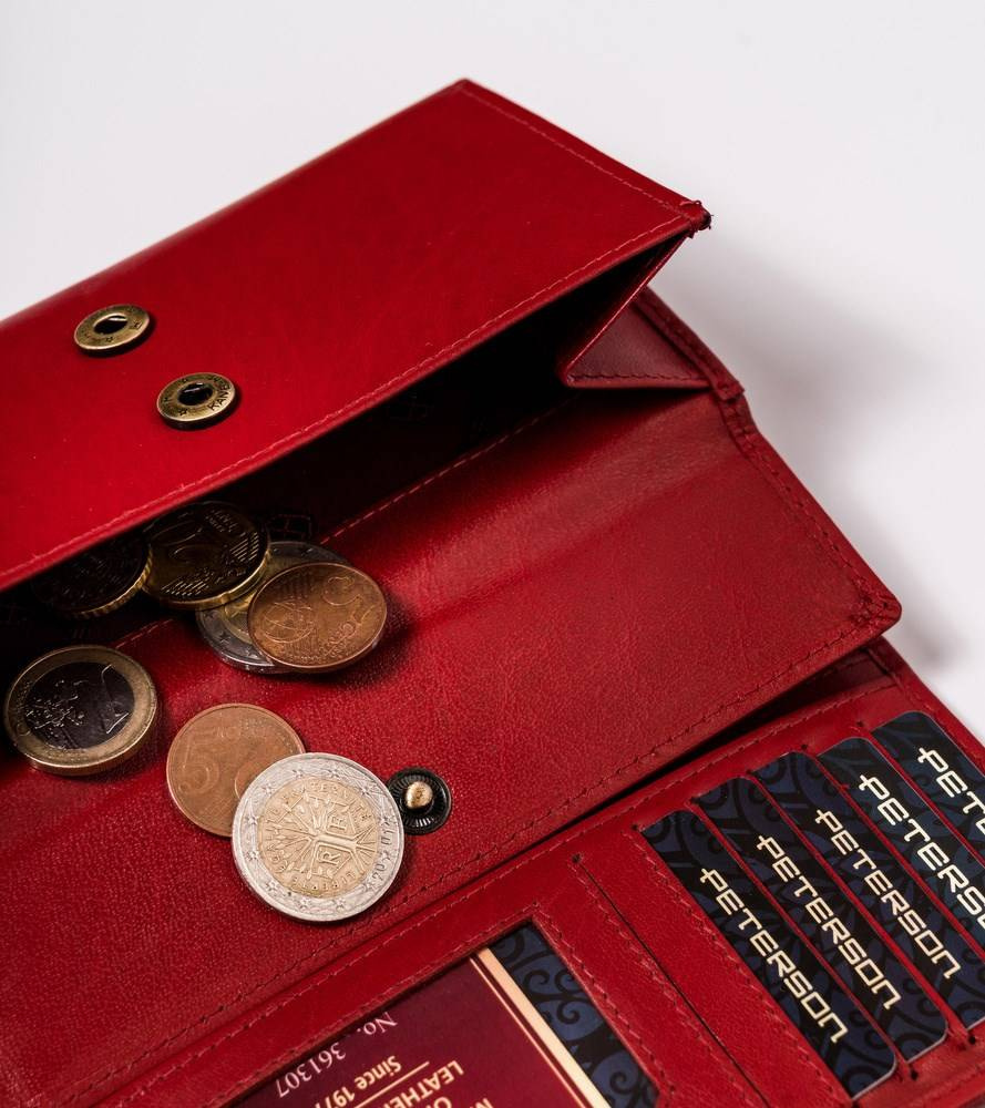 Skórzany portfel damski z zewnętrzną kieszenią — Peterson