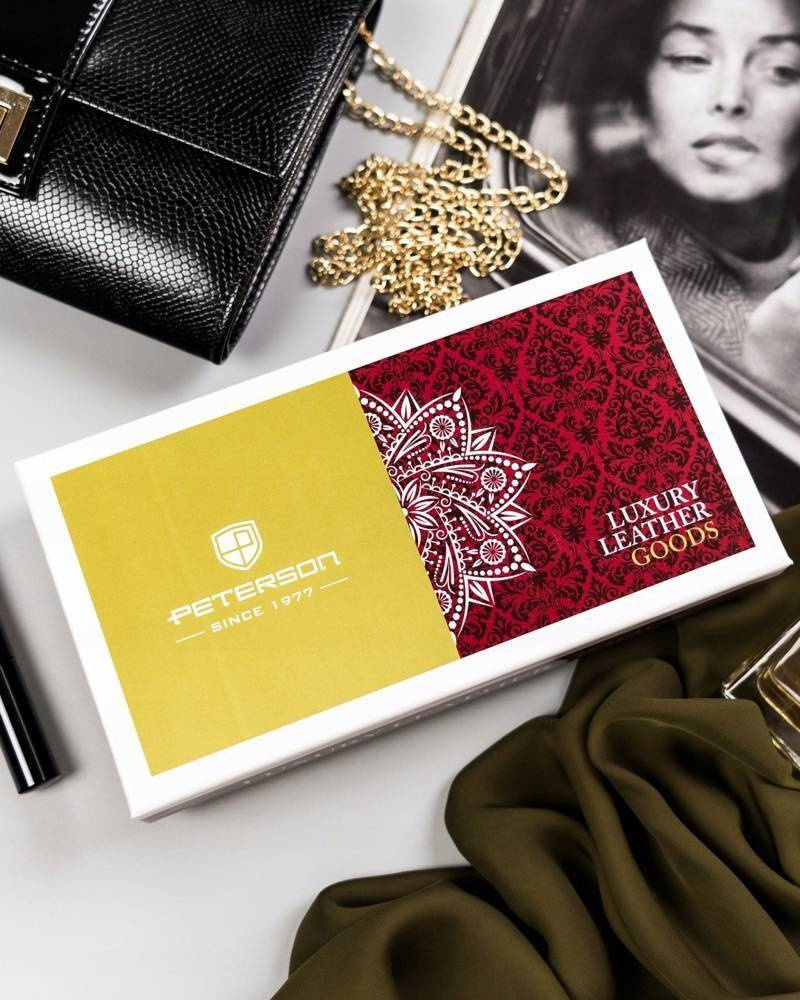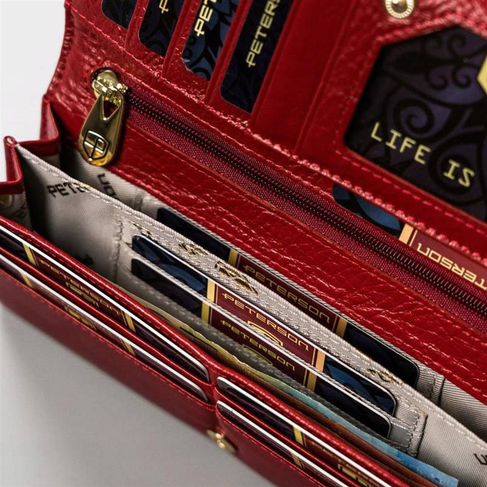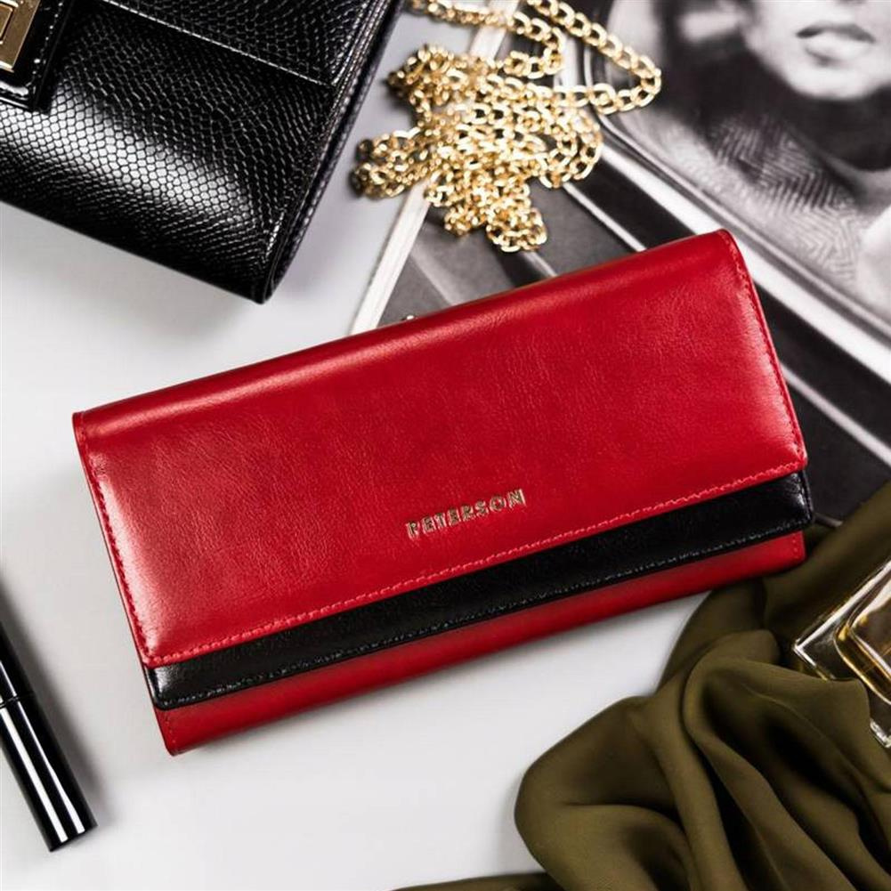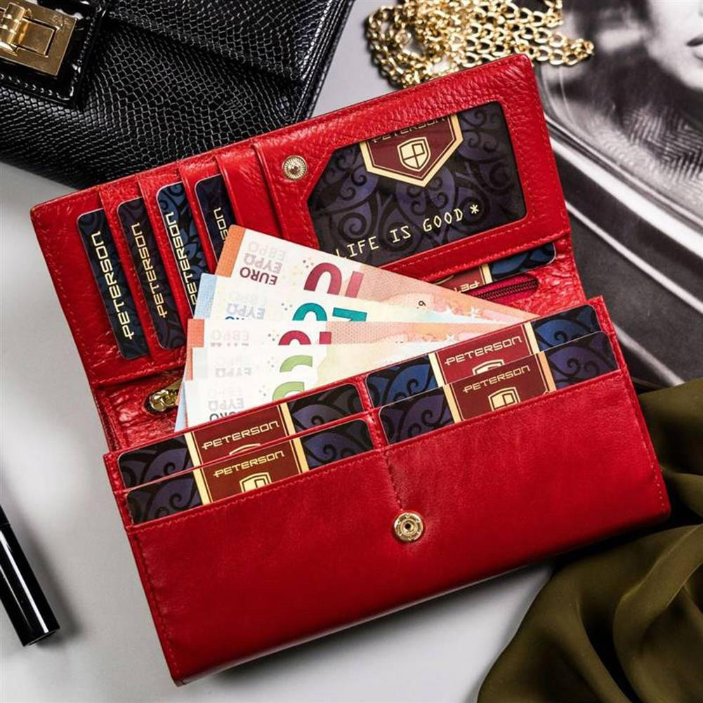 Duży, skórzany portfel damski na zatrzask i bigiel — Peterson