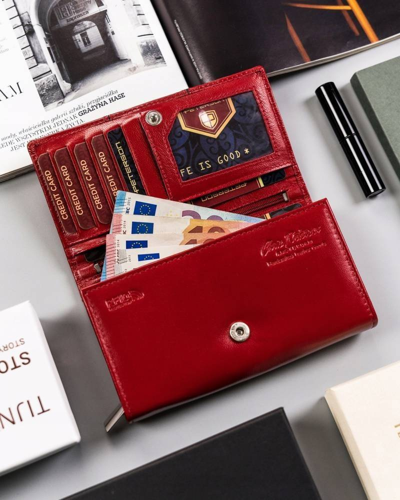 Portfel jest bardzo pojemny również w kwestii gotówki. Kieszenie na pieniądze, podobnie jak przegródki na karty także wyściełane są odporną na otarcia podszewką.