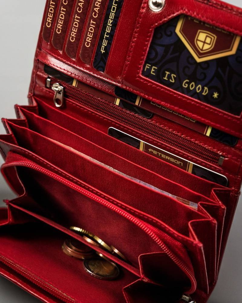 - Sekcja na karty | Portfel posiada dużo praktycznych przegródek i kieszonek, dzięki czemu pomieści wszystkie karty i dokumenty;