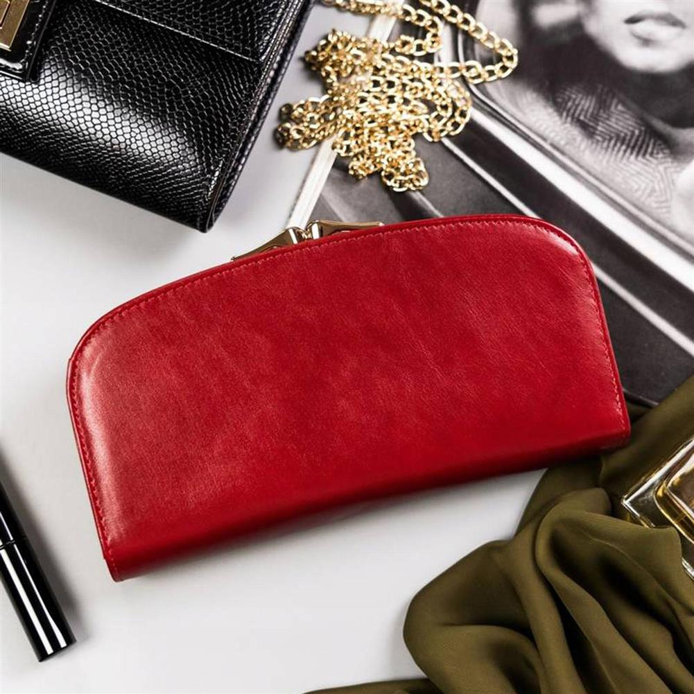 - Ponadczasowy design | Portfel o klasycznej stylistyce w czerwonym kolorze. Model w orientacji poziomej, zapinany bezpiecznym i trwałym zatrzaskiem;