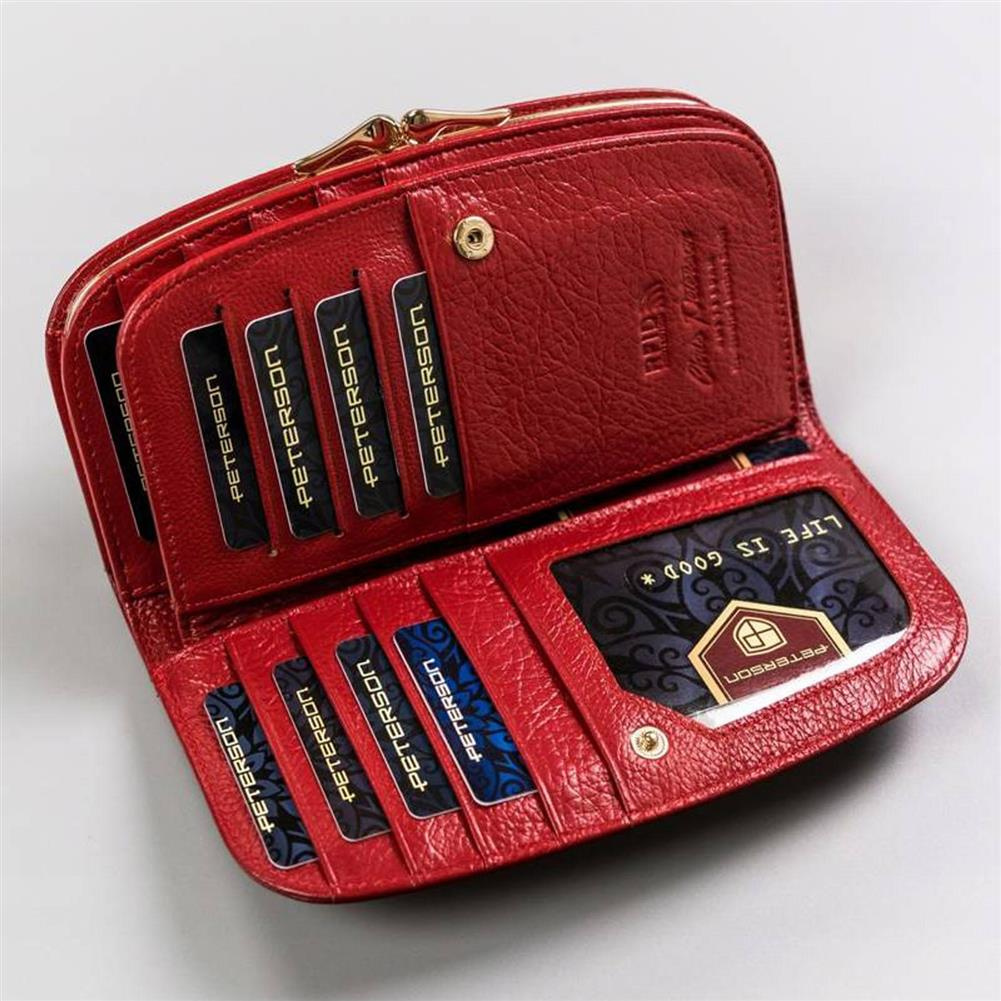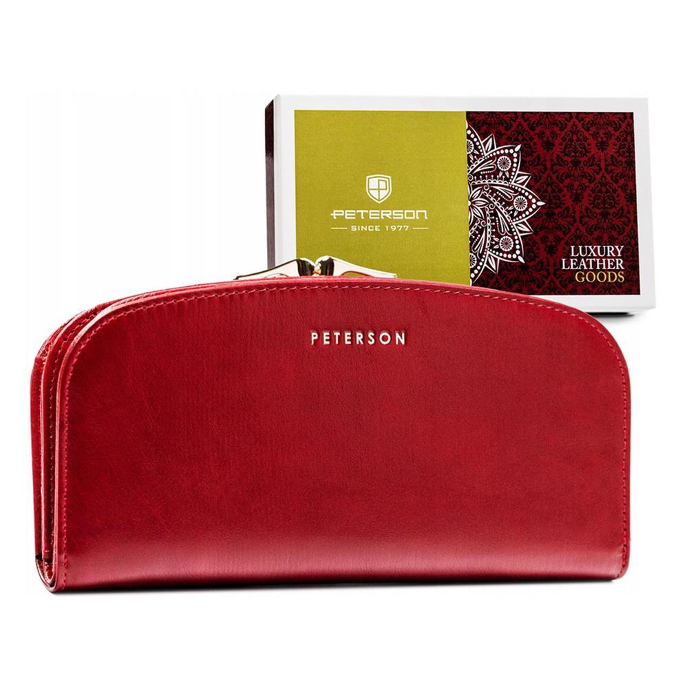 Duży, skórzany portfel damski na bigiel i zatrzask — Peterson