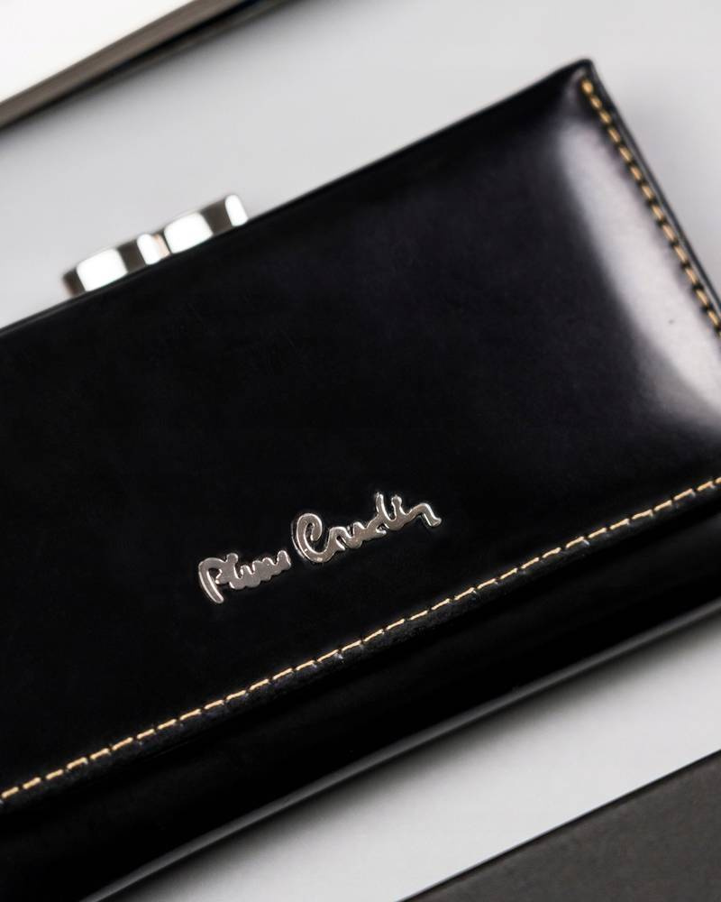 Klasyczny portfel damski ze skóry naturalnej na bigiel i zatrzask — Pierre Cardin