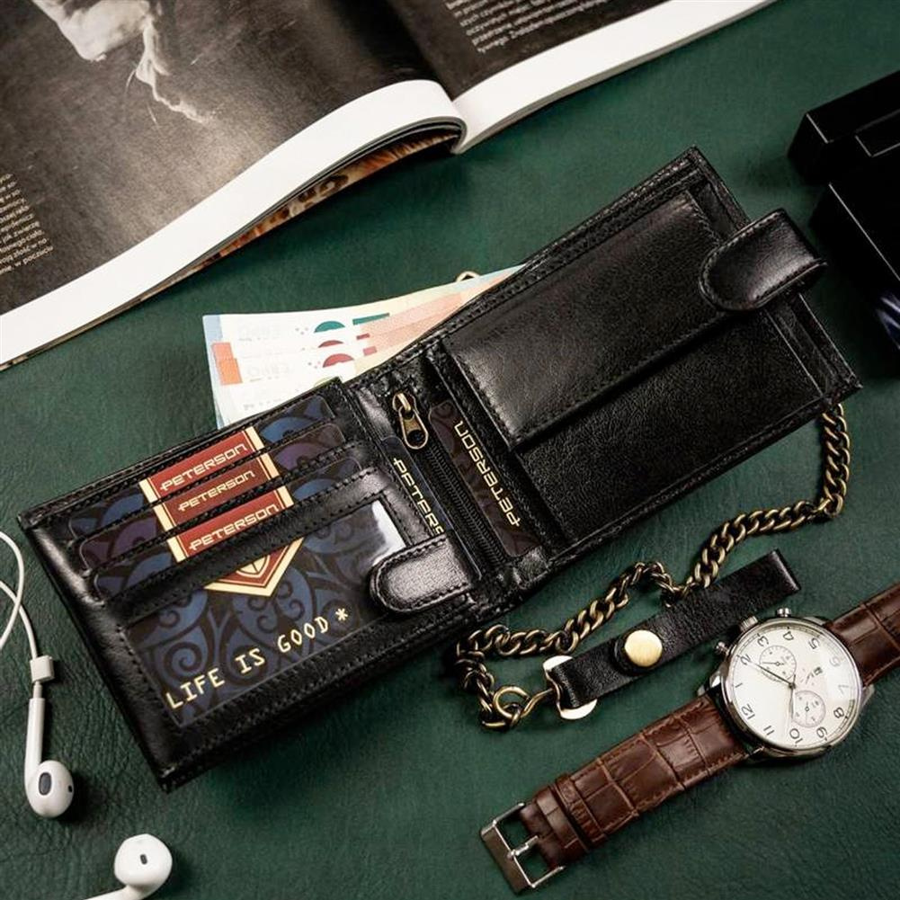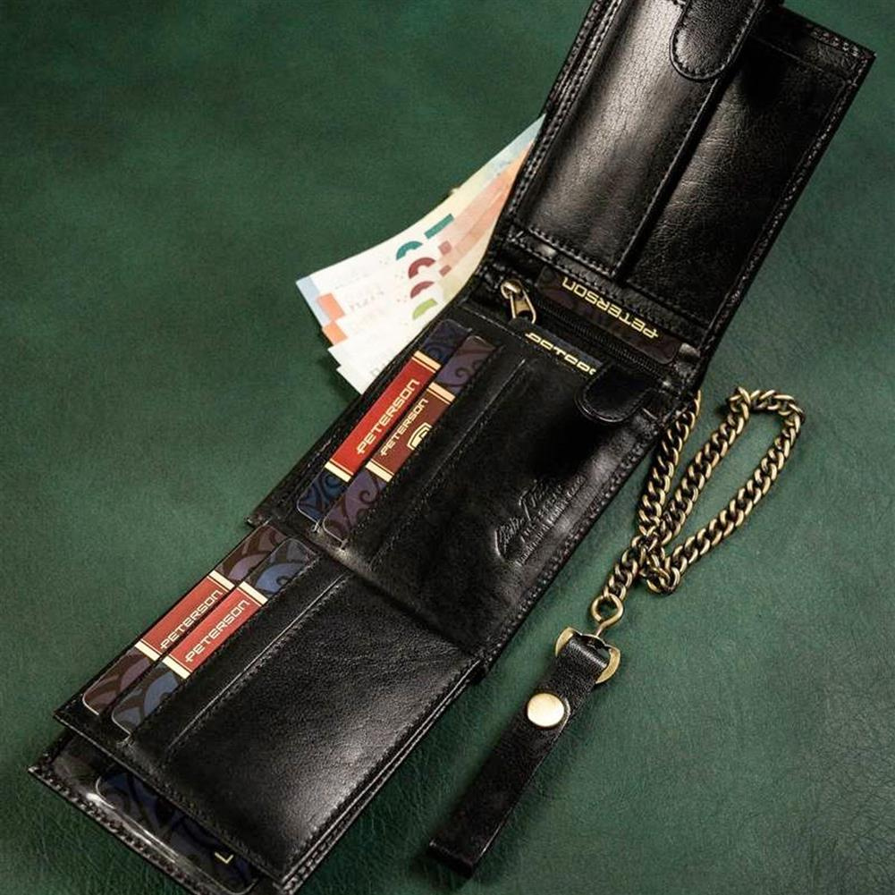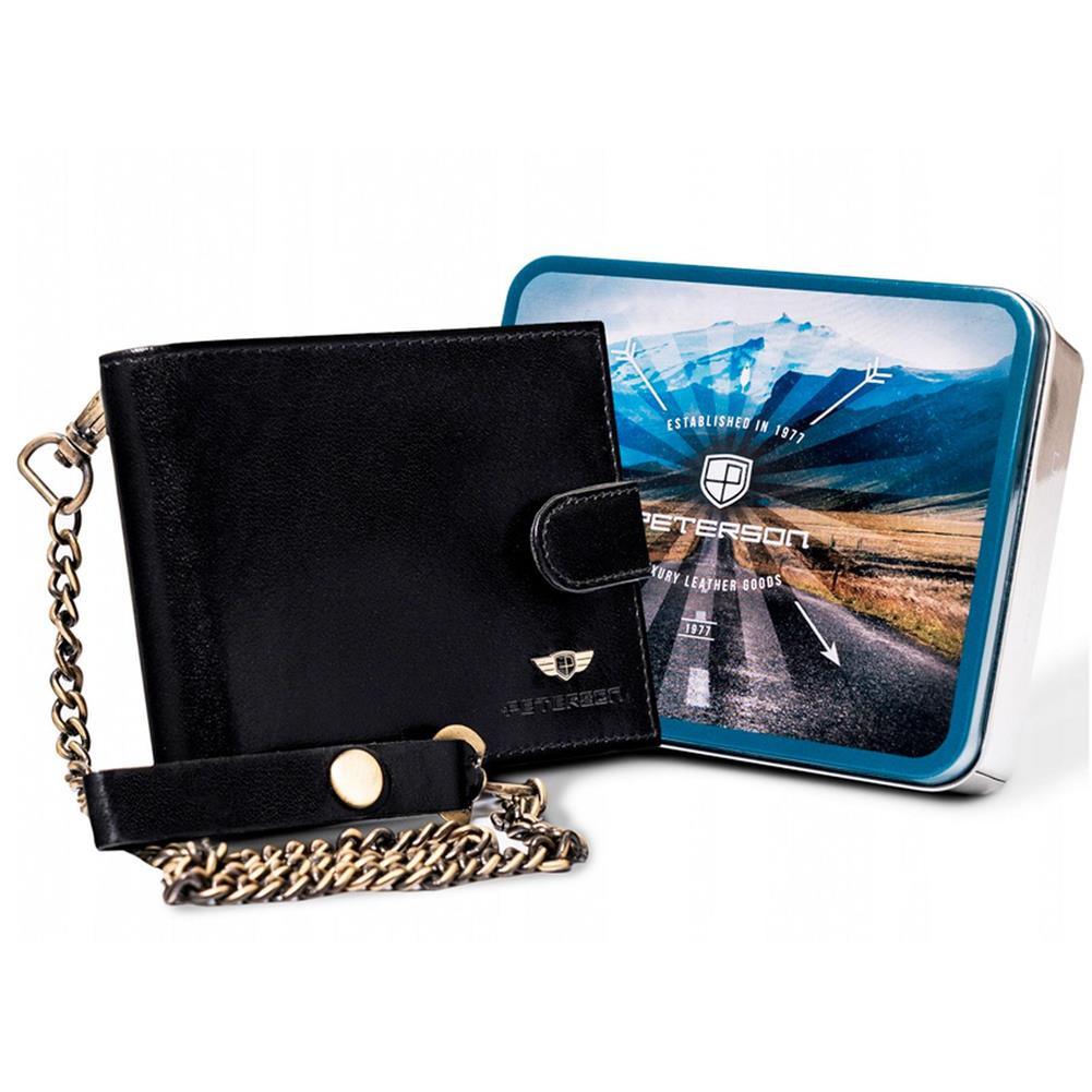 Poziomy portfel męski ze skóry naturalnej z łańcuchem — Peterson