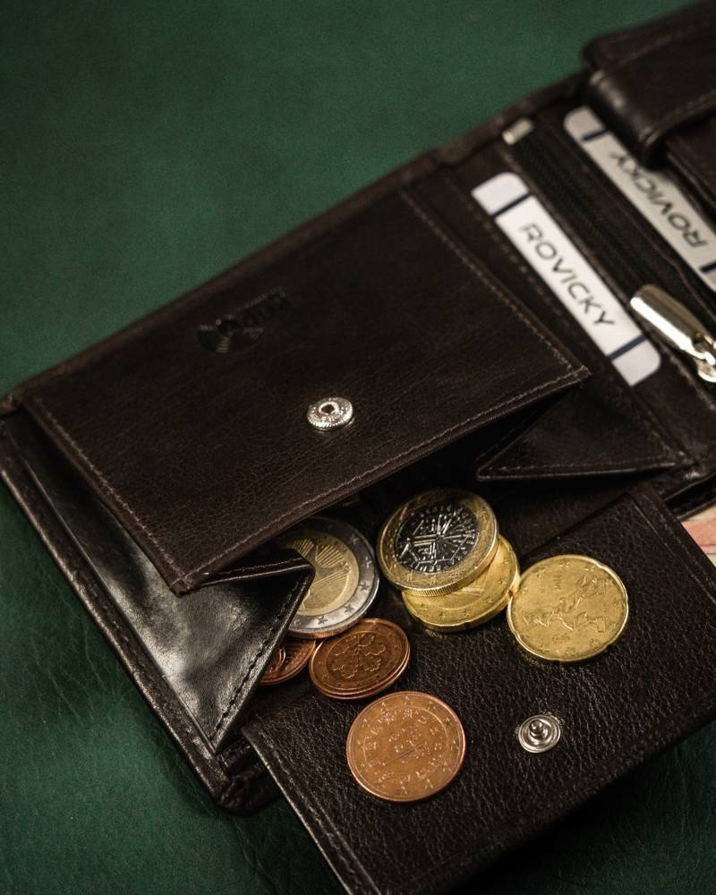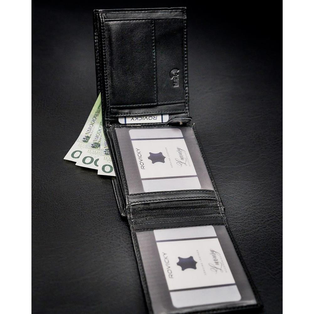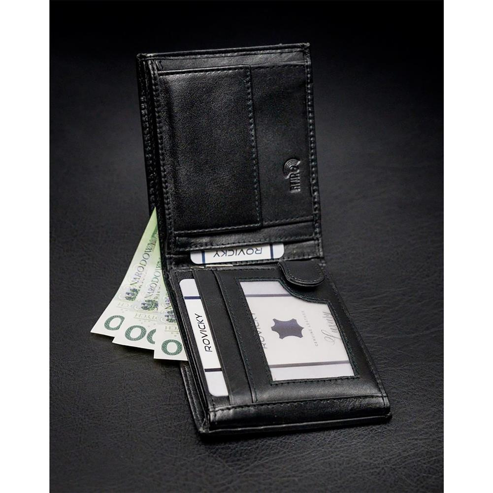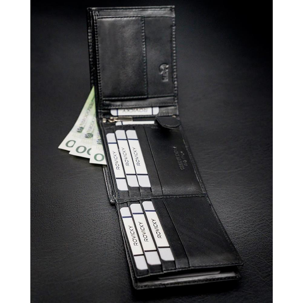 Produkt cenionej polskiej marki Rovicky odszyty z wysokogatunkowej skóry naturalnej licowej. Klasyczny, ponadczasowy portfel w orientacji poziomej, subtelnie ozdobiony przeszyciem grubą nicią oraz małym logo marki. W czasie produkcji zastosowano solidne materiały, które wpływają na wysoką jakość portfela. Decydując się na niego, nie będziesz musiał martwić się zmianą portfela przez kilka lat! Portfel został wyposażony w technologie RFID, która chroni portfel przed złodziejami używającymi czytniku do kart.