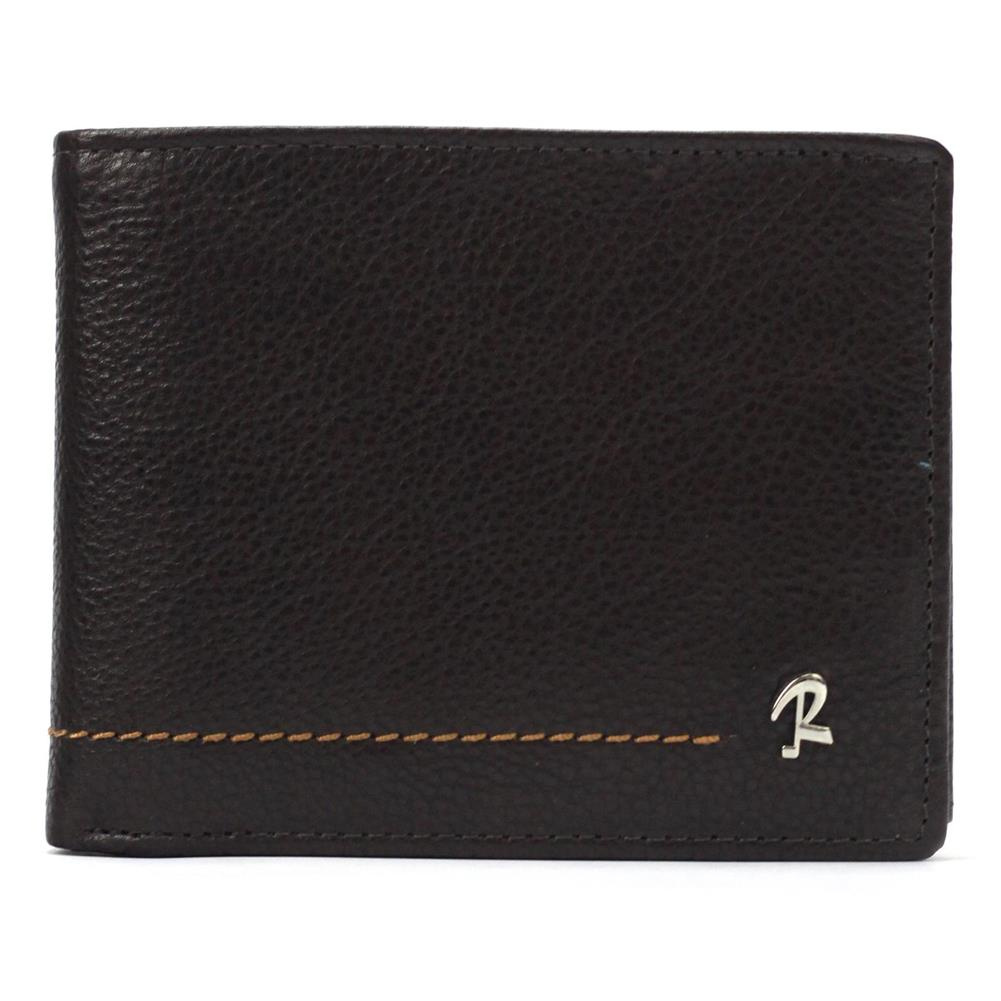 Poziomy, skórzany portfel męski z ozdobnym przeszyciem — Rovicky